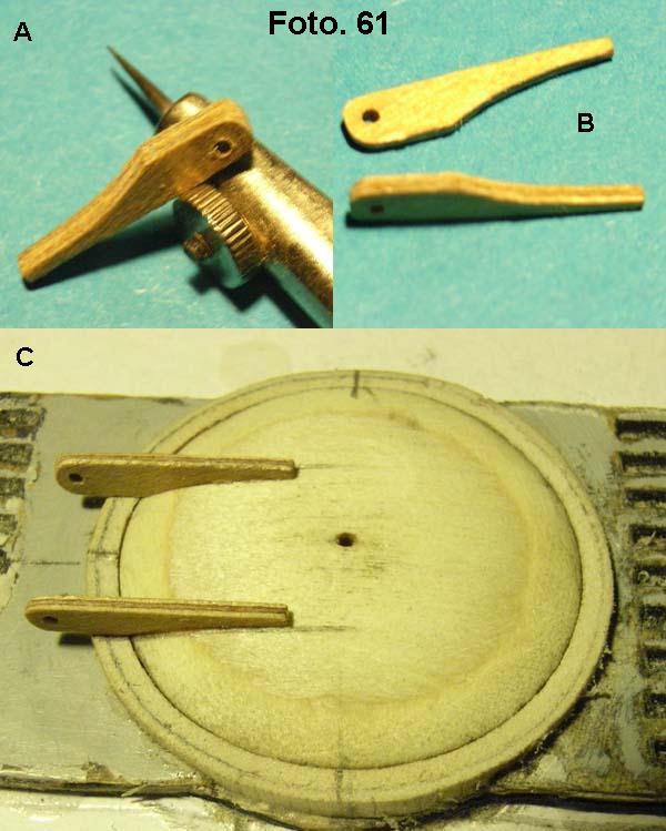 Pokrywa ma być otwierana, więc wykonałem i wkleiłem zawiasy. Zawiasy zostały wykonane ze sklejkowej kształtki modelarskiej gr. 0,6mm, foto. 61 i 62.