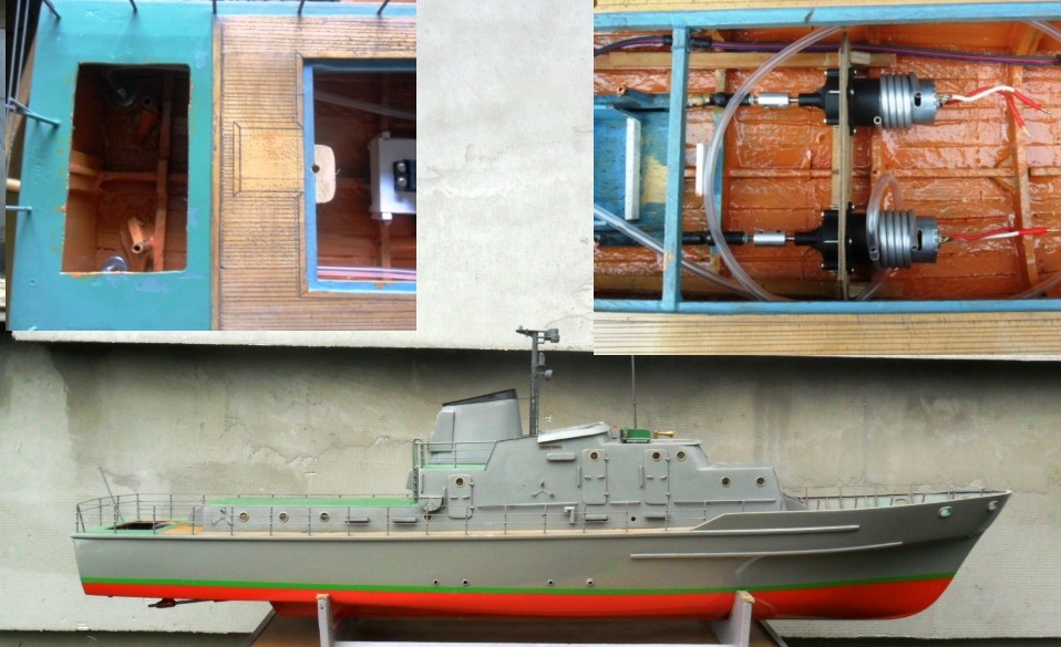 Model po malowaniu kadłuba farbami poliuretanowymi ,nowe łoże silników z przekładniami 3:1,przewentylowane z chłodzeniem wodnym silnika,powiększona dostęp do wejścia czerpni wody i sterów.wymalowane wnętrze poliuretanami.