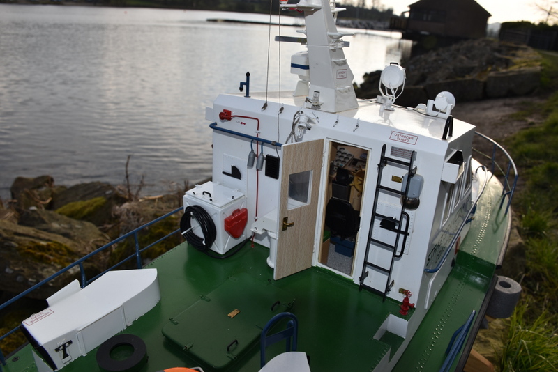 Kończę relację z budowy tego modelu. Po wielu testach w pływaniu mogę stwierdzić, że model zachowuje się realistycznie, dość trudno pływa na dużej fali (ale podobno oryginał w skali 1:1 miał ten sam problem), myślę, że to za sprawą dość szerokiego kadłuba. Na spokojniejszej wodzie ładnie sunie ślizgiem. W tej wersji wykonania jeżeli śledziliście z nim moje zmagania musiałem jeszcze prawie 800 gr ołowiu wrzucić mu na dupkę, przez co środek ciężkości poszedł trochę do tyłu i zanurzenie na spokojnym pływaniu jest dokładnie na linii wodnej. Przed doważeniem dziób był trochę za nisko.