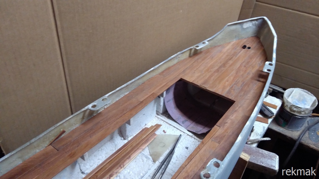 Skończyłem wyklejanie pokładu. Nie wyszło tak jakbym chciał. Będzie szlifowanie.