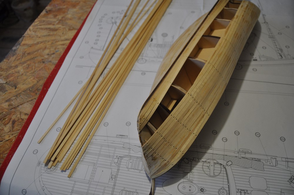 Wręgi - super, wycięte laserowo z prawdziwej sklejki 6mm, dopasowane idealnie. Po złożeniu i sklejeniu, żadnych skręceń, czy innych niespodzianek. Sztywność całości na 5+. Na poszycie dali listewki 5x1,5mm.Troche za cienkie i łamliwe