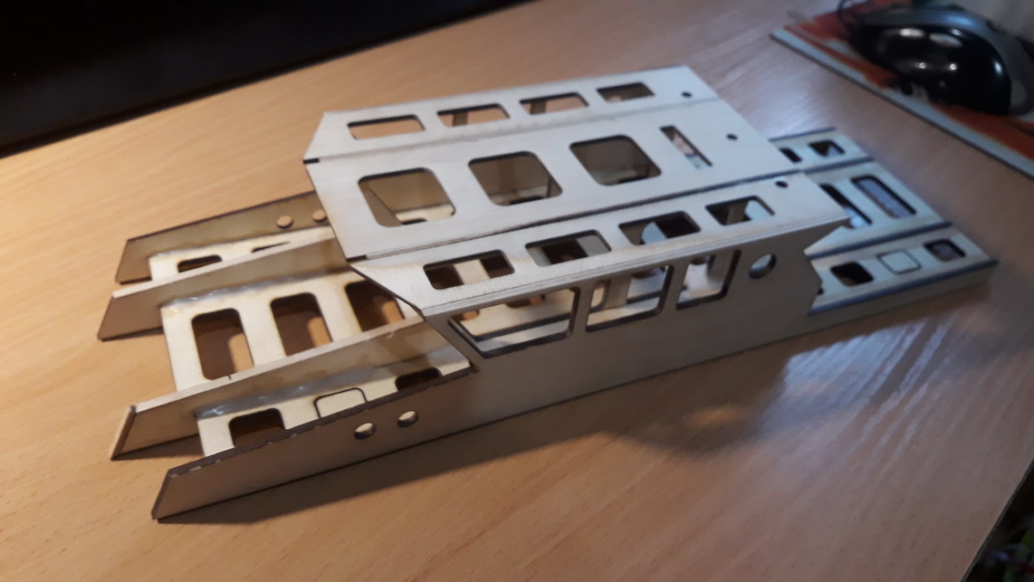 Zapowiada się ładny modelik szkoda ze nie robisz z poliestyrenu to materiał który tez można wypalić laserem a zdecydowanie lepszy do zastosowań w modelarstwie .