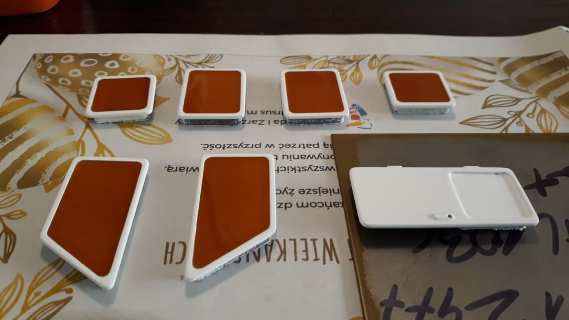Pierwsza próba z niebieskim kolorem..kiepska bo za cukierkowa..Drugie podejście kolor bursztynowy czyli jak przyciemniane szyny i to błyszczące. Strzał w dziesiątkę!