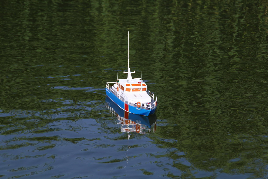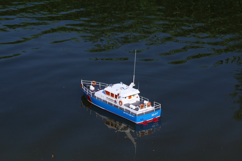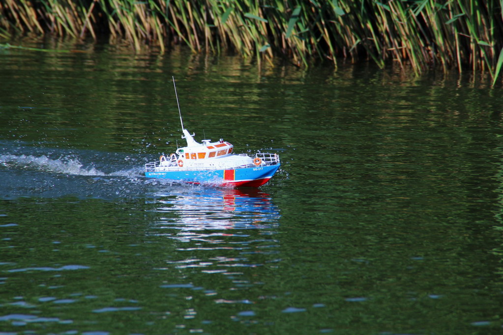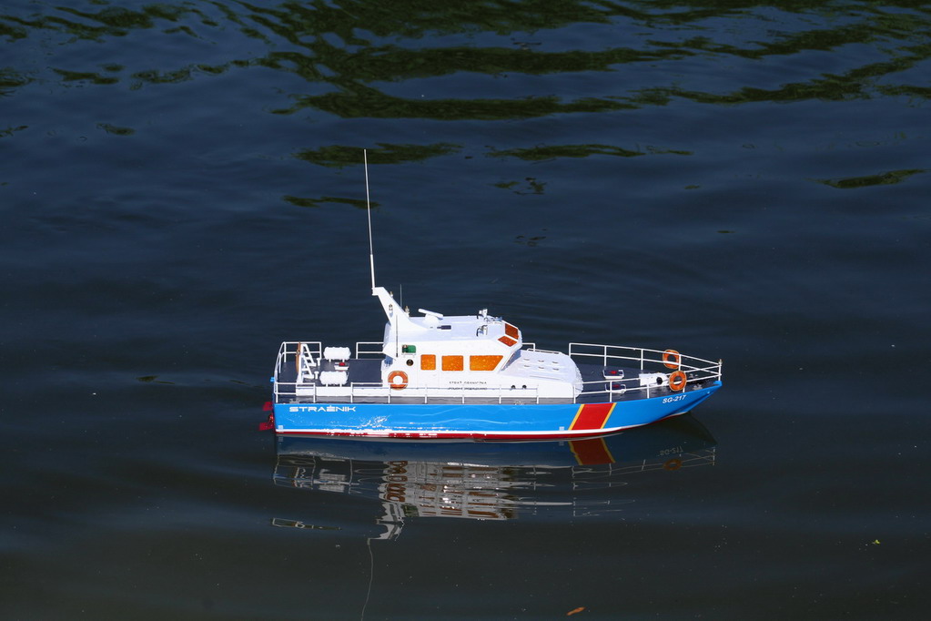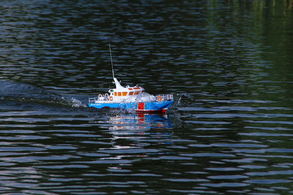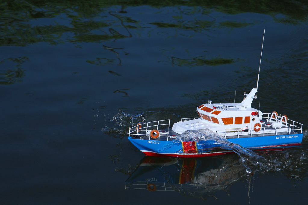 Kolega Ryszard ma rację, konstrukcja kadłuba nie jest przystosowana do dużych prędkości, w moim kutrze oraz w oryginale wzdłuż kadłuba biegnie listwa która powoduje załamywanie się fali, oraz kadłub wyposażony jest w płetwę ślizgu, stąd mój model bardzo fajnie zachowuje się podczas szybkiego pływania, zamieszczam filmiki pokazujące ten efekt:
