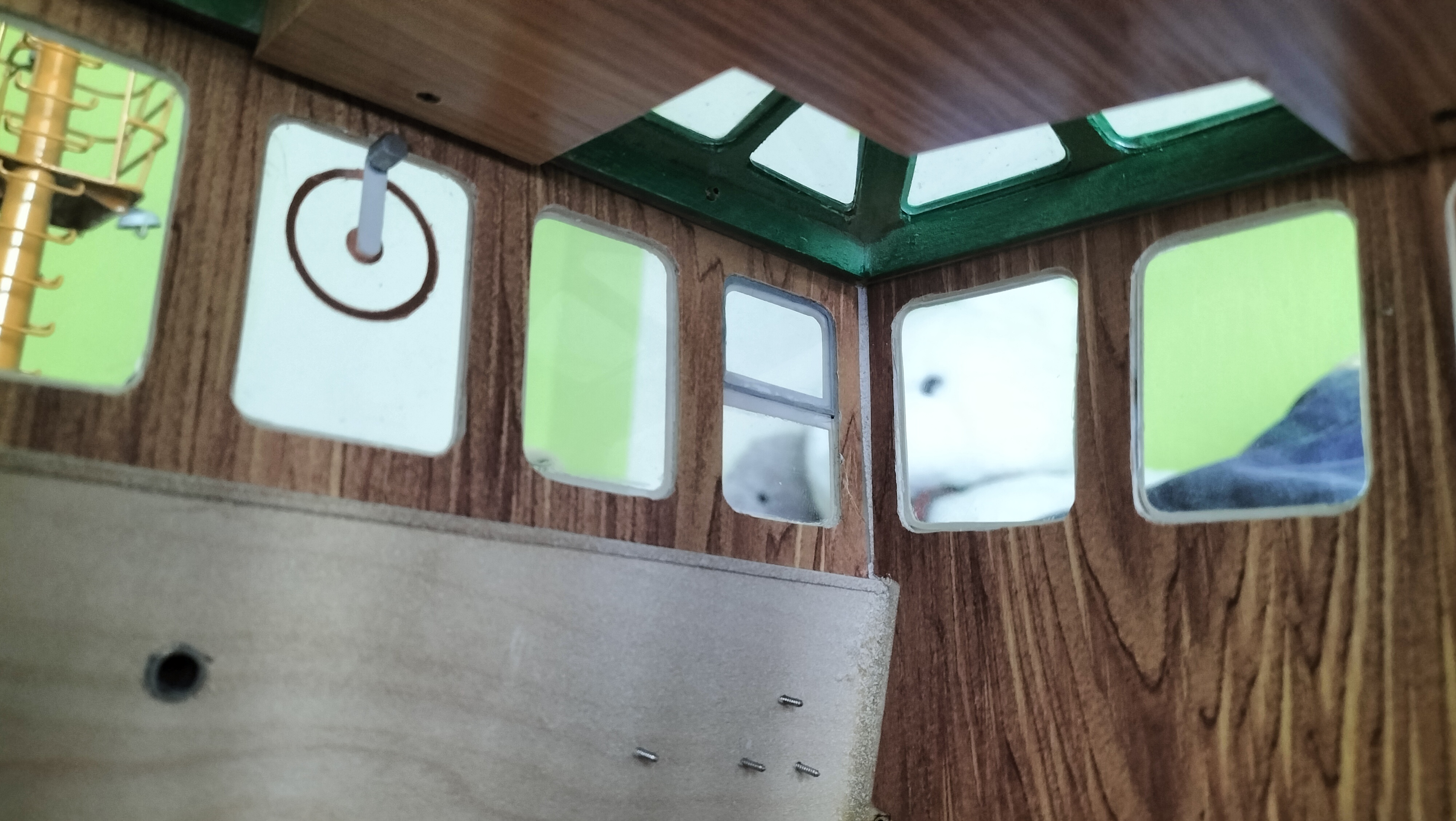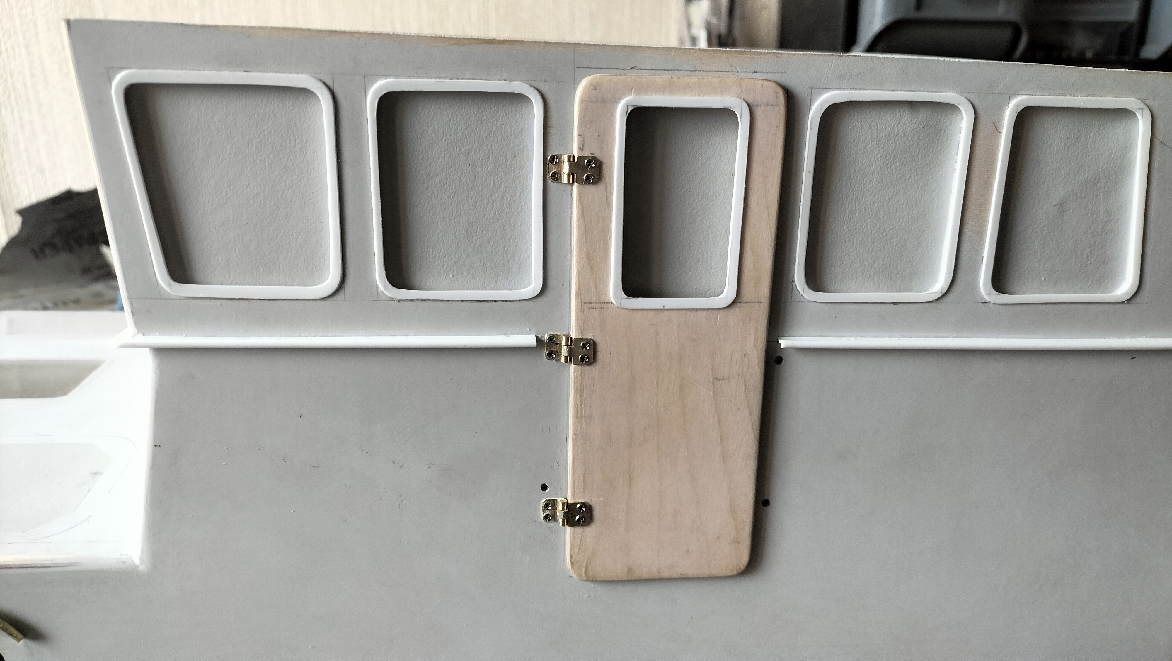 Dzisiaj stoczyłem walkę z micro-zawiasami do drzwi sterówki. Jak na razie cierpliwości starczyło mi tylko na jedną stronę. Muszę przez noc odpocząć, by jutro zwalczyć drugą stronę. ;)