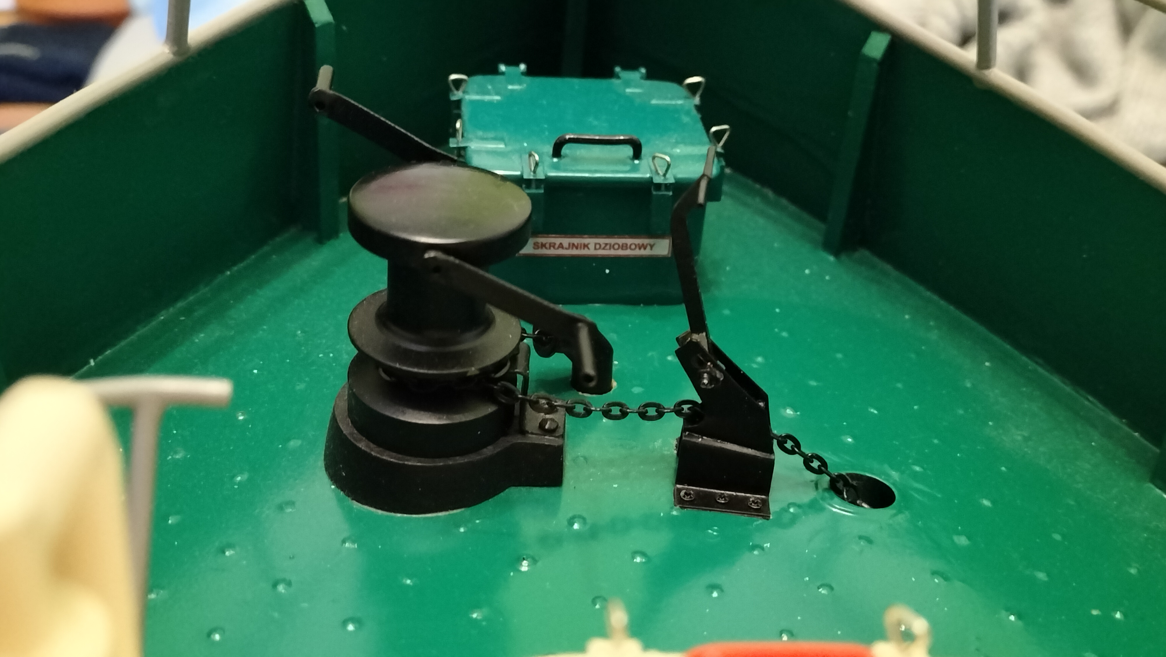 Do wykonania tego elementu na nadbudówce użyłem 2mm kształtownik polistyrenowy U, oraz półwałek 2mm.