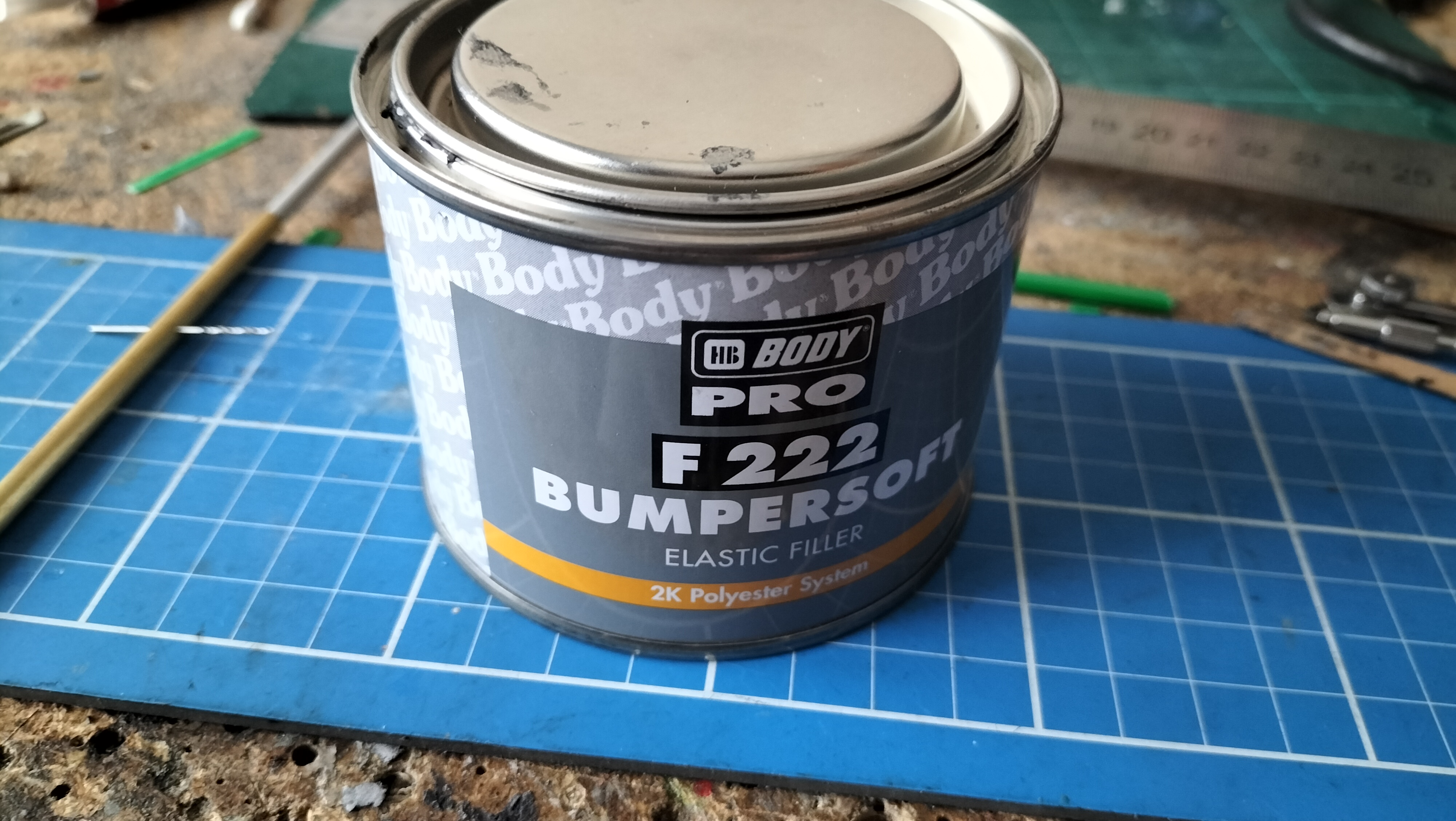 Materiał pokrętła to elastyczna szpachlówka poliestrowa , czarna używana do naprawy zderzaków samochodowych.