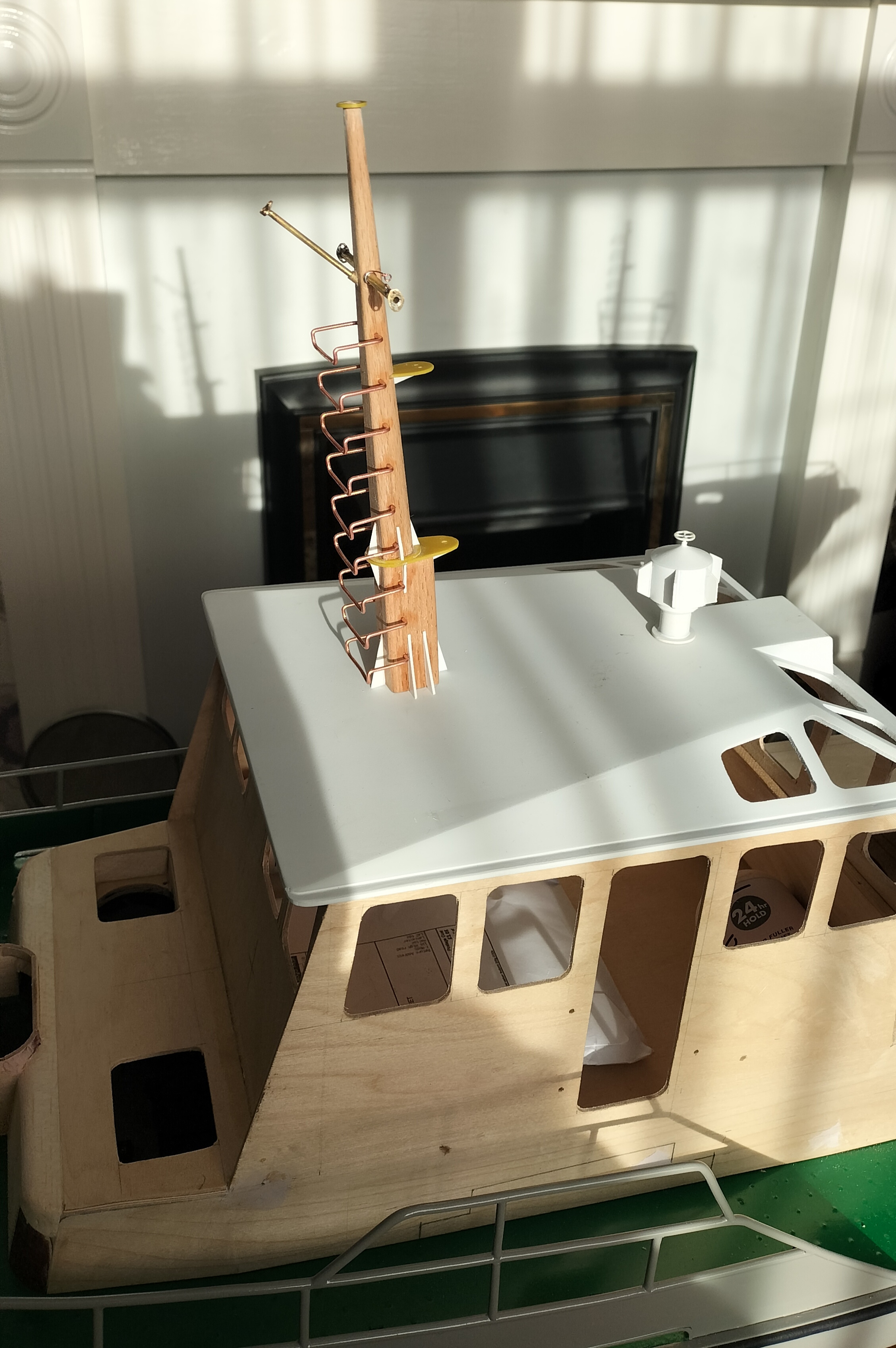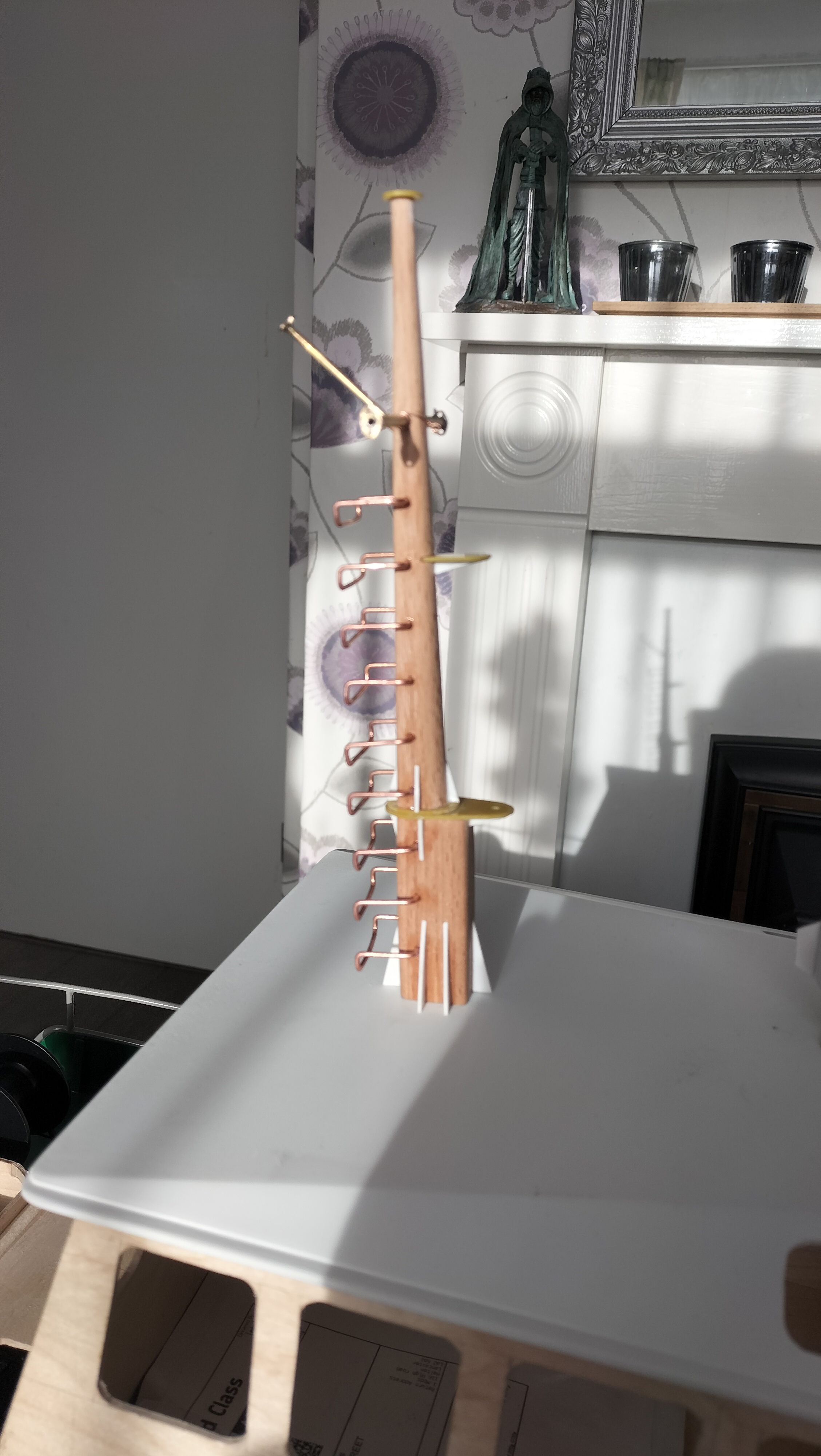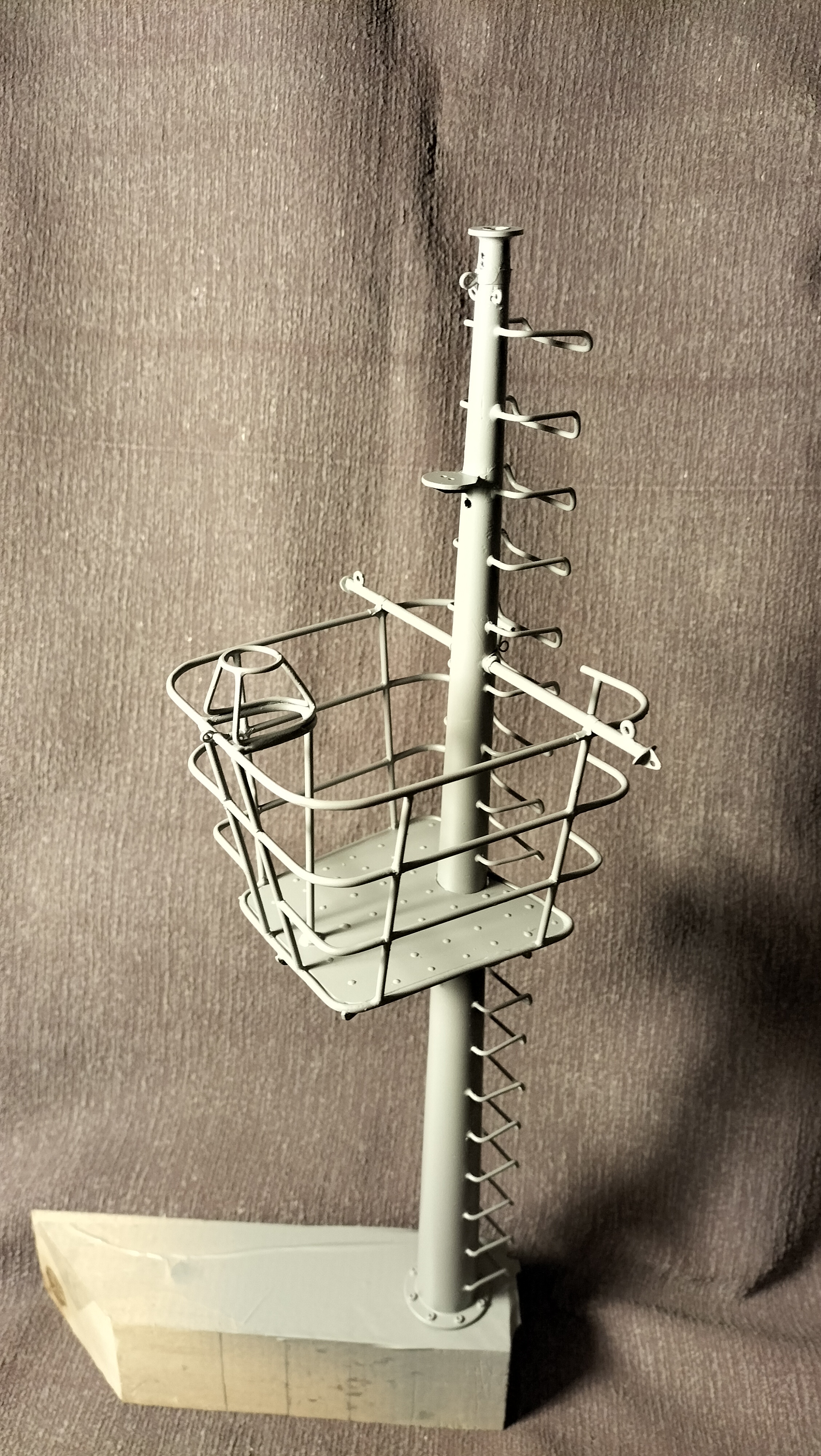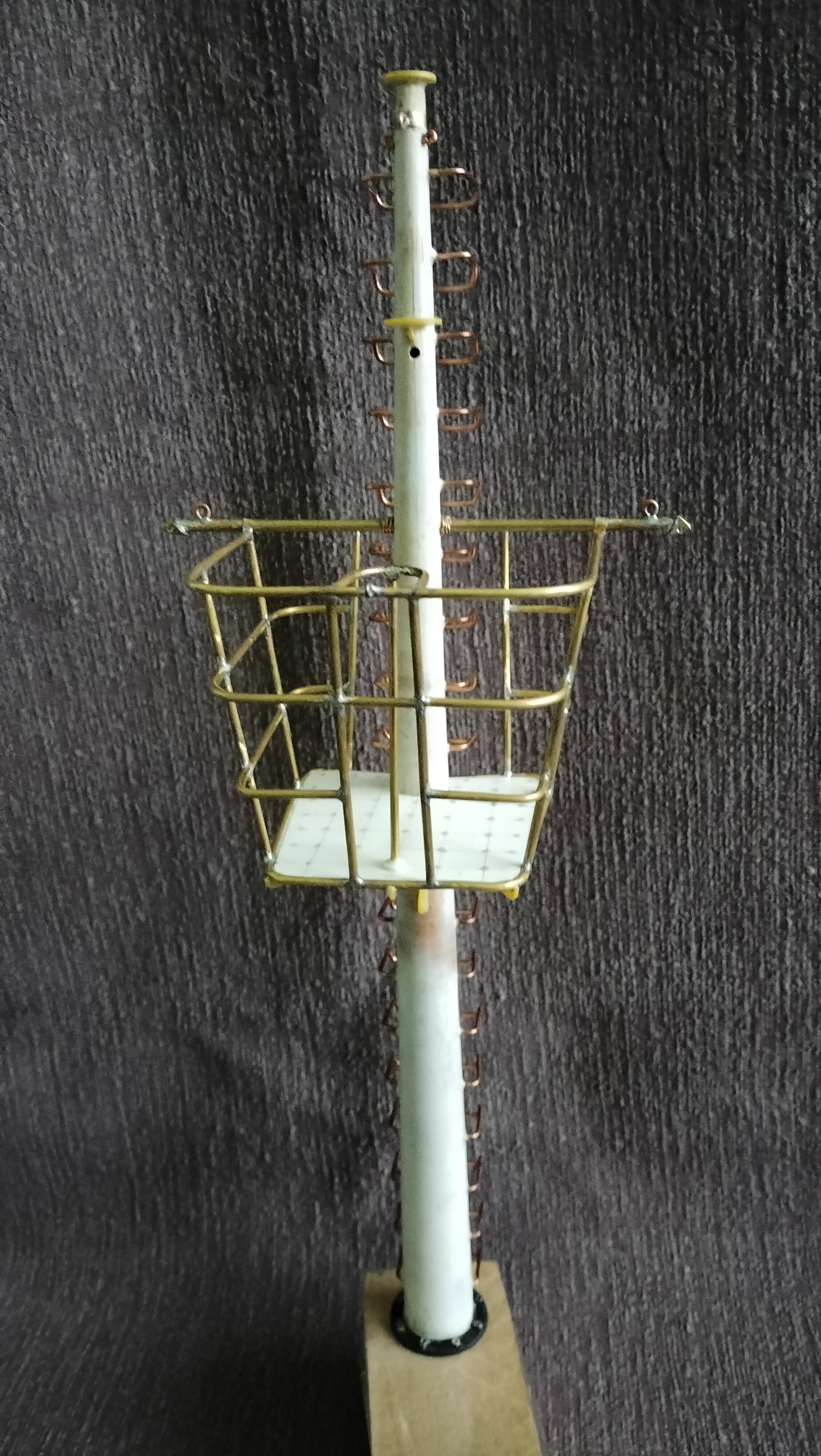 Maszt przedni prawie skończony, bo zostało tylko malowanie. Musi poczekać, aż wykonam tylni. Te same kolory, więc będą malowane razem.