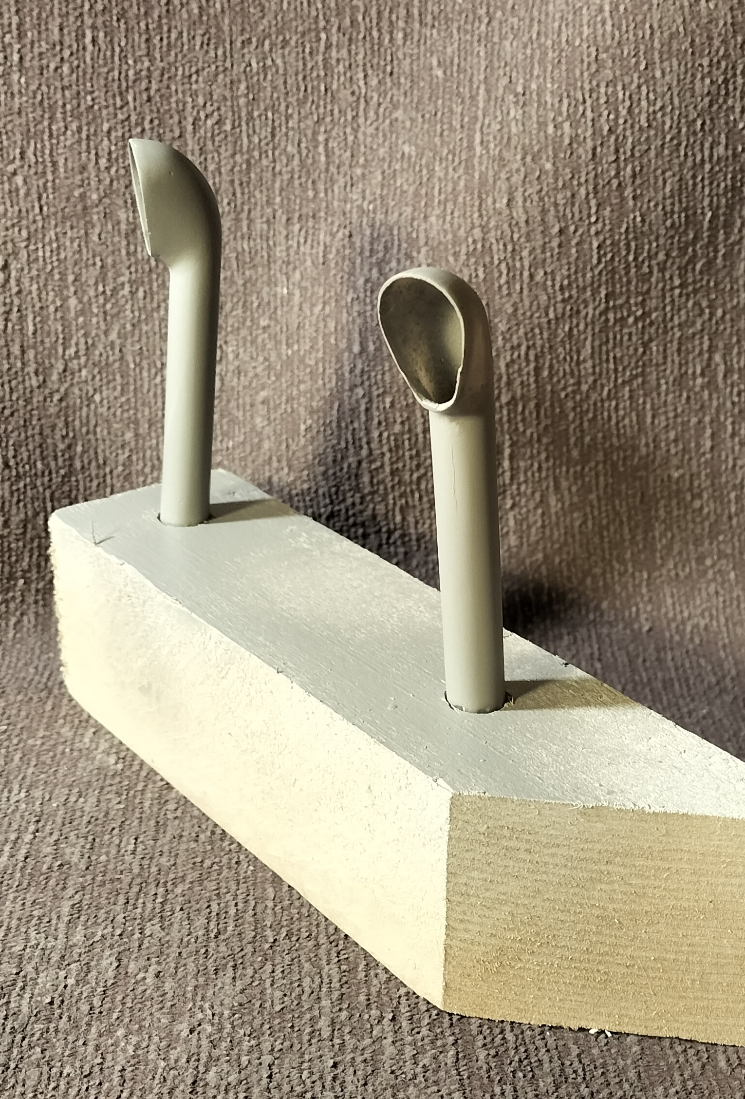 Ich kształt jest dość problematyczny, aby cokolwiek zaadoptować do imitacji. Zdecydowałem wykonać kopytko, formę i pozytyw laminatowy.