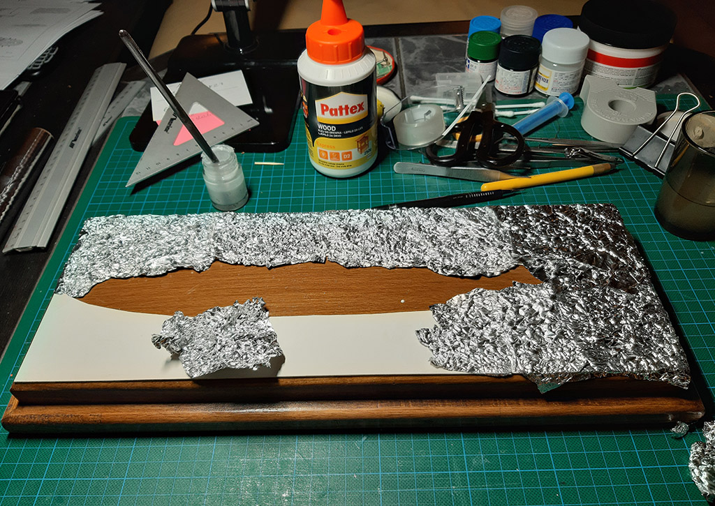 Przykleiłem Pattexem gniecioną folię aluminiową