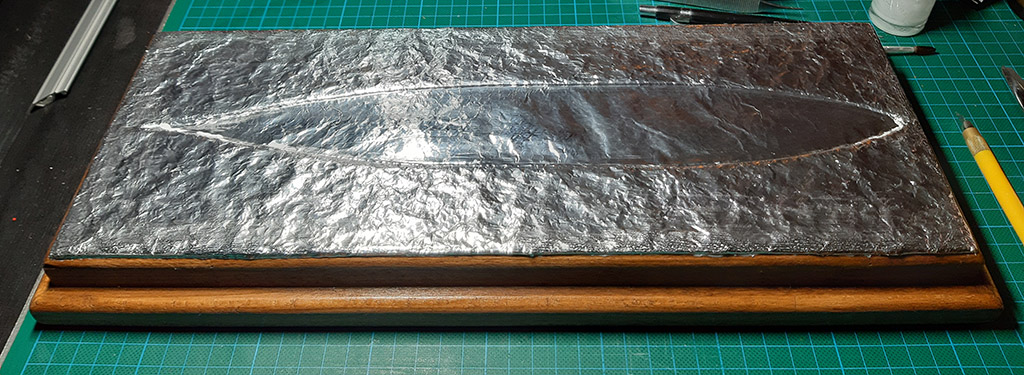 Ponieważ żel Talensa po wyschnięciu jest przezroczysty musimy użyć np. watę by wydobyć fale. Na początek wypełniamy watą na żelu szczelinę wokół okrętu, potem kleimy fale na morzu