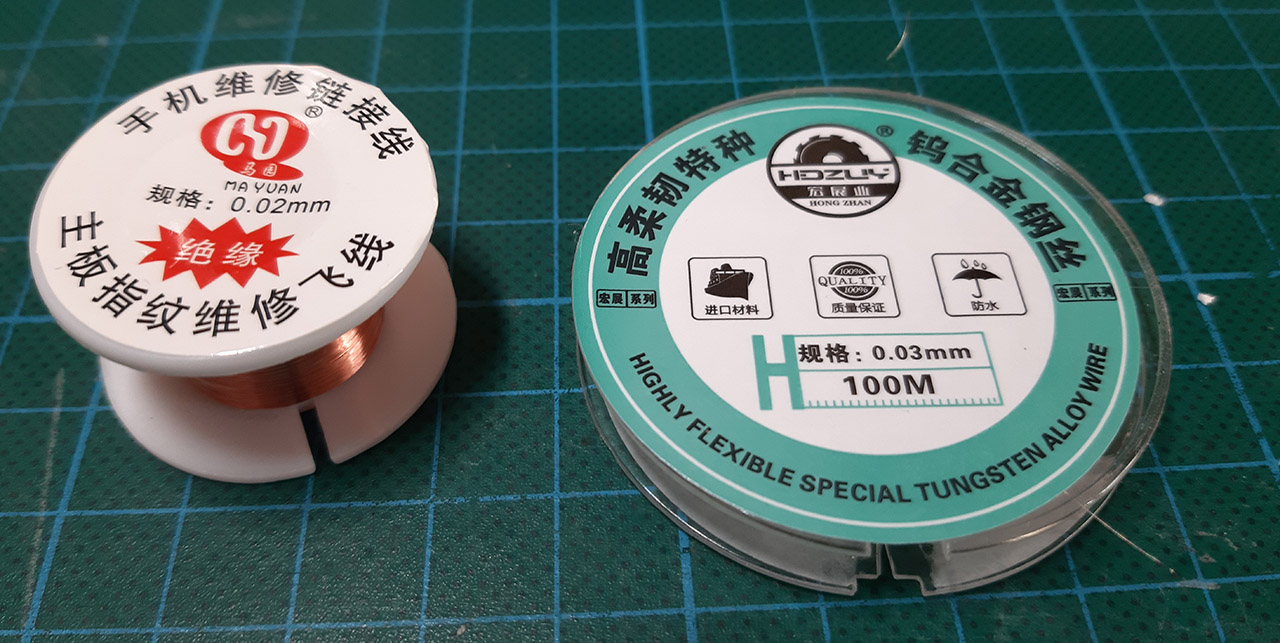 Do wykonania anten zakupiłem testowo drut molibdenowy i miedziany