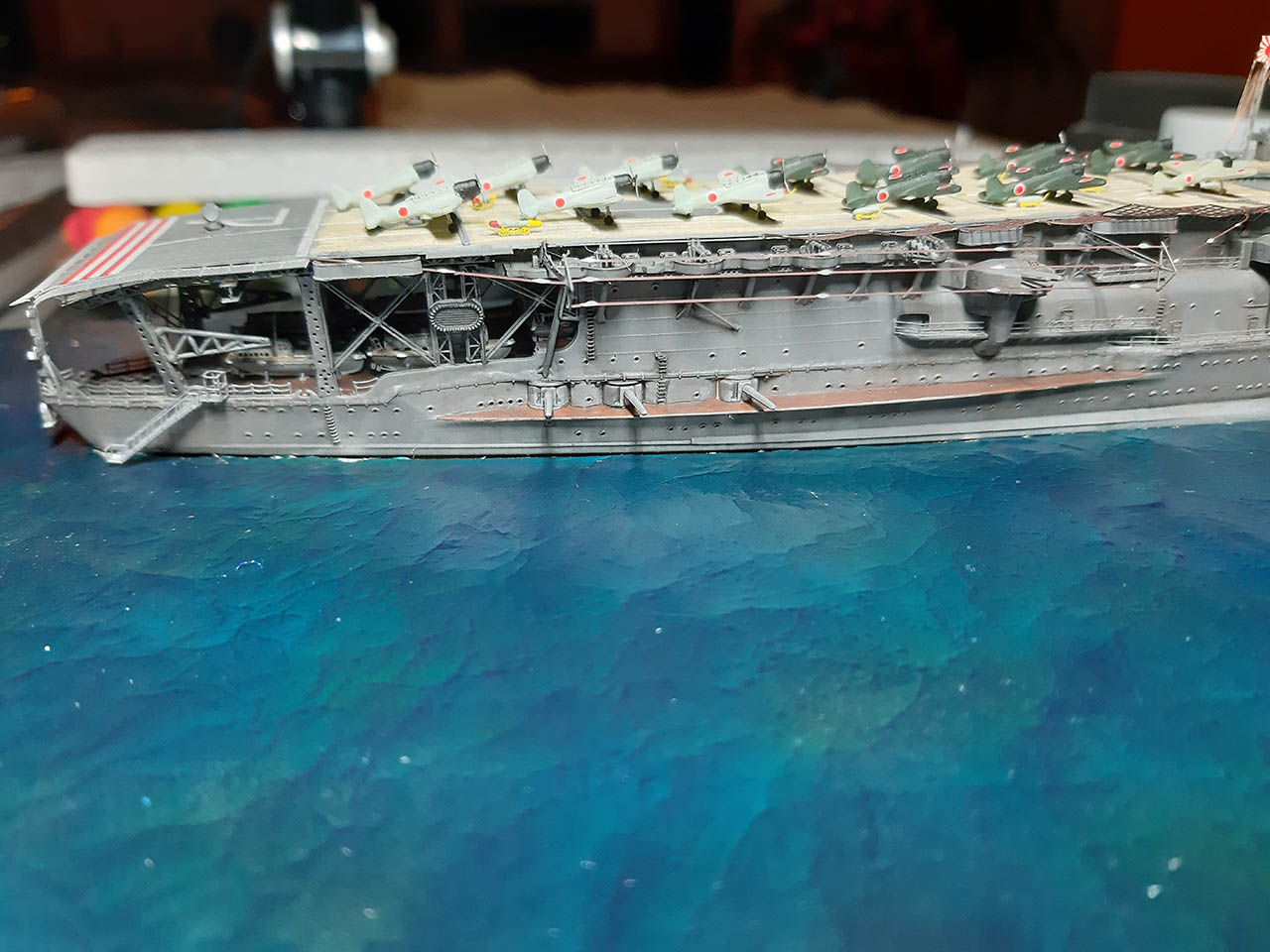 To jeszcze nie koniec relacji, gdyż siedemsetka bez morza jest jak ryba bez wody, więc będzie diorama. Akagi również nie może obyć się bez obstawy, osłania go pancernik - oczywiście Yamato, który jest zrobiony. Do kompletu dojdzie jeszcze niszczyciel Yukikaze klasy Kagero. Niszczyciel będzie na wspólnej dioramie z Akagi.