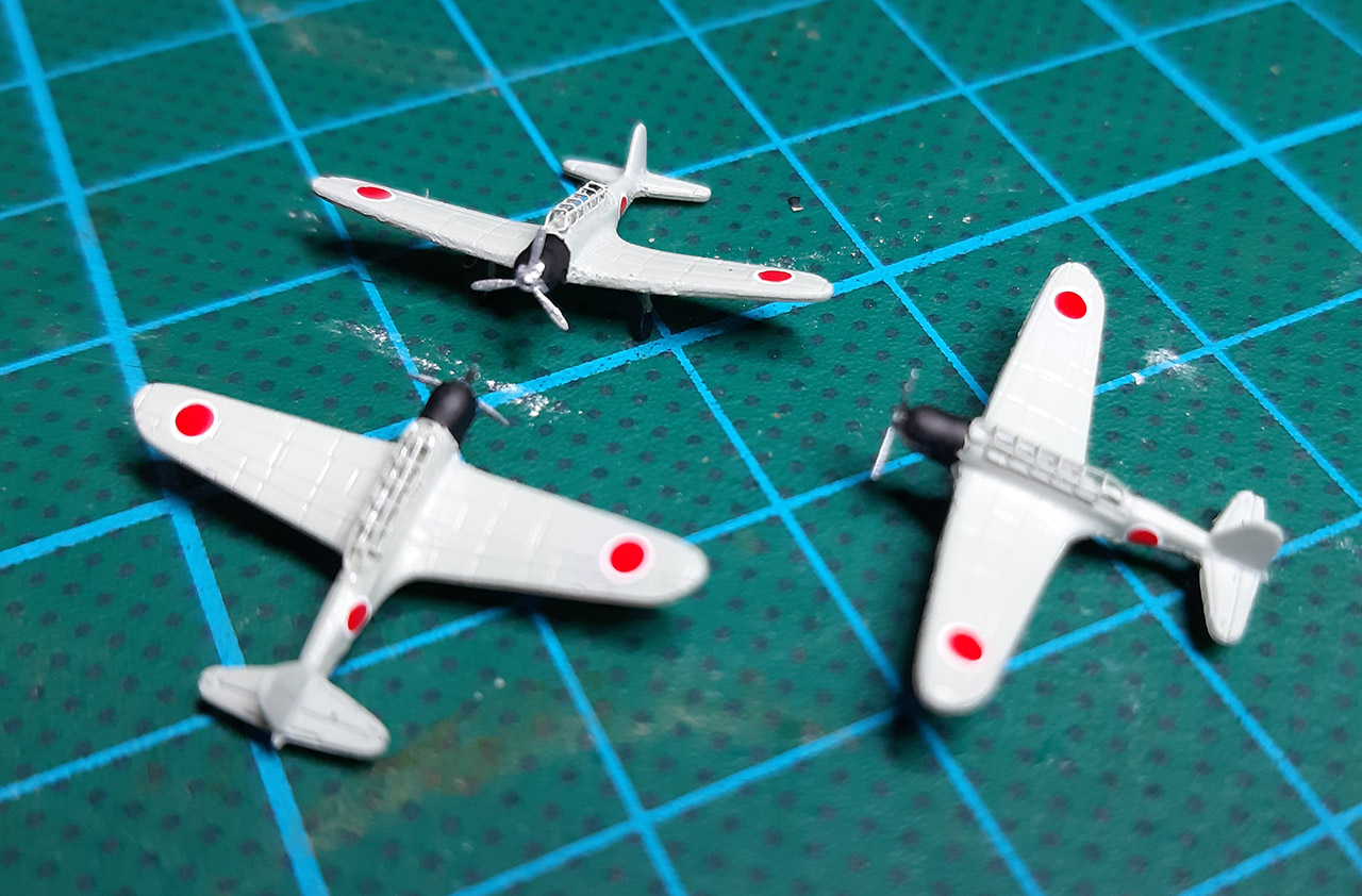 Samoloty pokładowe zrobione, 3 typy po 6 sztuk z każdego.