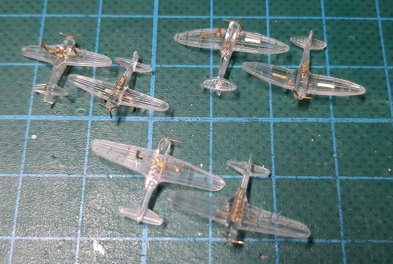 Nie do końca jestem zadowolony z samolotów gdyż krawędzie natarcia były kiepsko zrobione, co niektóre jeszcze pogorszyłem usuwając nadlewy. Ale nie widziałem tego na przezroczystej wyprasce, a dopiero na powiększonym zdjęciu pomalowanego samolotu. Nie widac tego gołym okiem - musi tak zostać