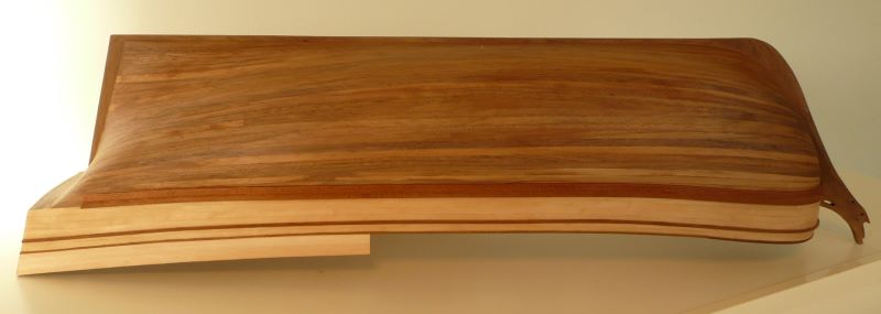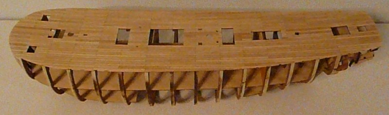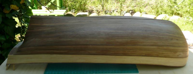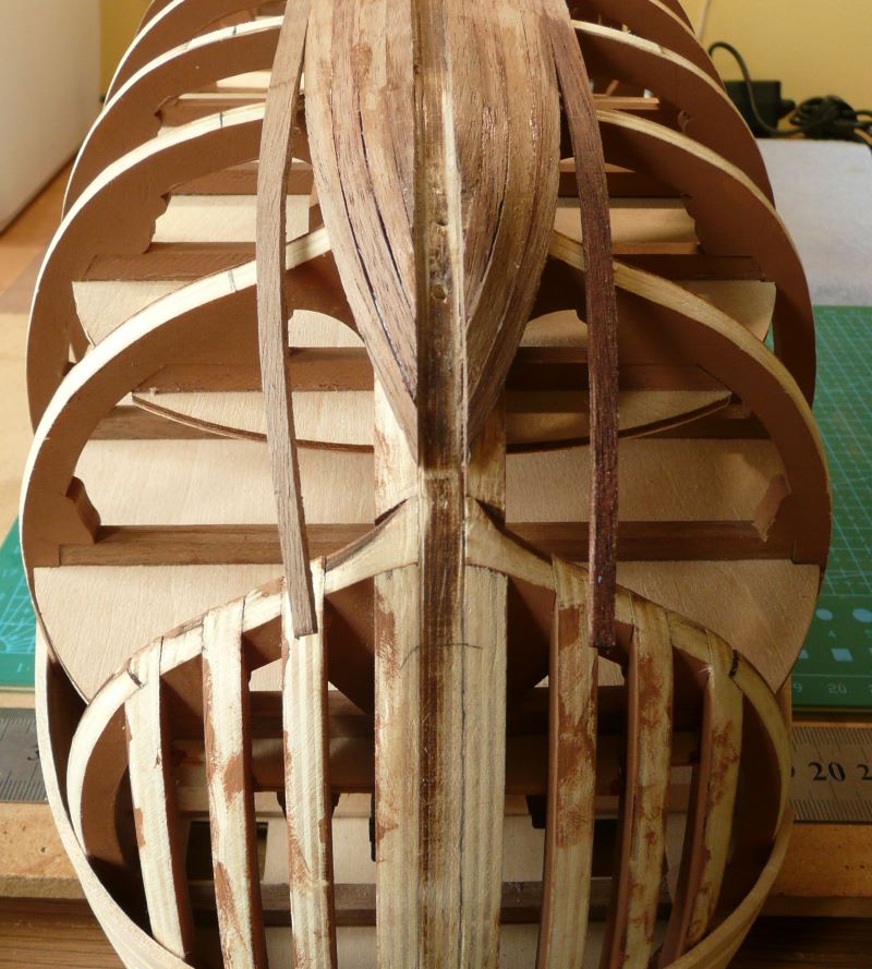 Poszycie jest jednowarstwowe i wykonane jest z listewek o przekroju 2x5 mm. Prawa burta modelu jest otwarta i poszycie wykonane jest tylko częściowo.