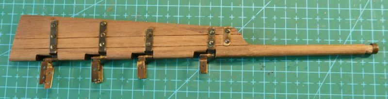 Drążek sterowy wraz z olinowaniem zostanie zamontowany na sterze w późniejszym etapie budowy: