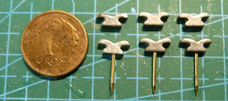 W zestawie znalazłem odlewy tylko kotwic dziobowych. Pozostałe będę musiał wykonać na późniejszym etapie budowy.