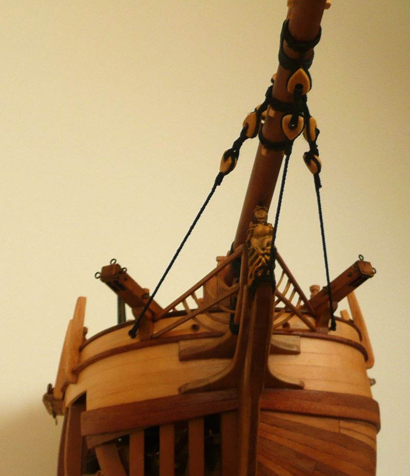 Na statkach floty Kolumba, które wcześniej budowałem, maszty miały prostą, najczęściej jednoczęściową konstrukcję. W kolejnych wiekach maszty stawały się coraz wyższe, wielopiętrowe, a ich konstrukcja uległa znacznej komplikacji. Na "Bounty" występują trzy maszty, a każdy ma trzy piętra (kolumnę, stengę i bramstengę). Technologię budowy masztów opisał na Kodze kolega Karrex https://www.koga.net.pl/grupy/viewdiscu ... groupid=70