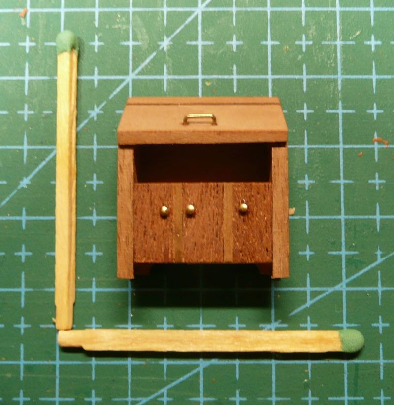Między ławy naglowe bezanmasztu wbudowana jest szafka na kompas i inne przyrządy nawigacyjne. Szkielet szafki został pokryty fornirem z gruszy