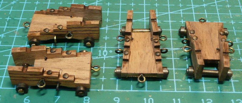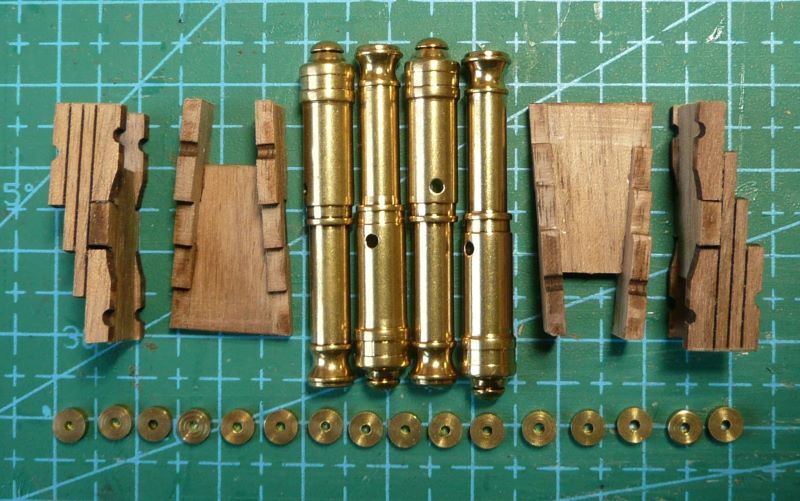 W zestawie znalazłem lufy armat, elementy do sklejenia lawet i kółka.