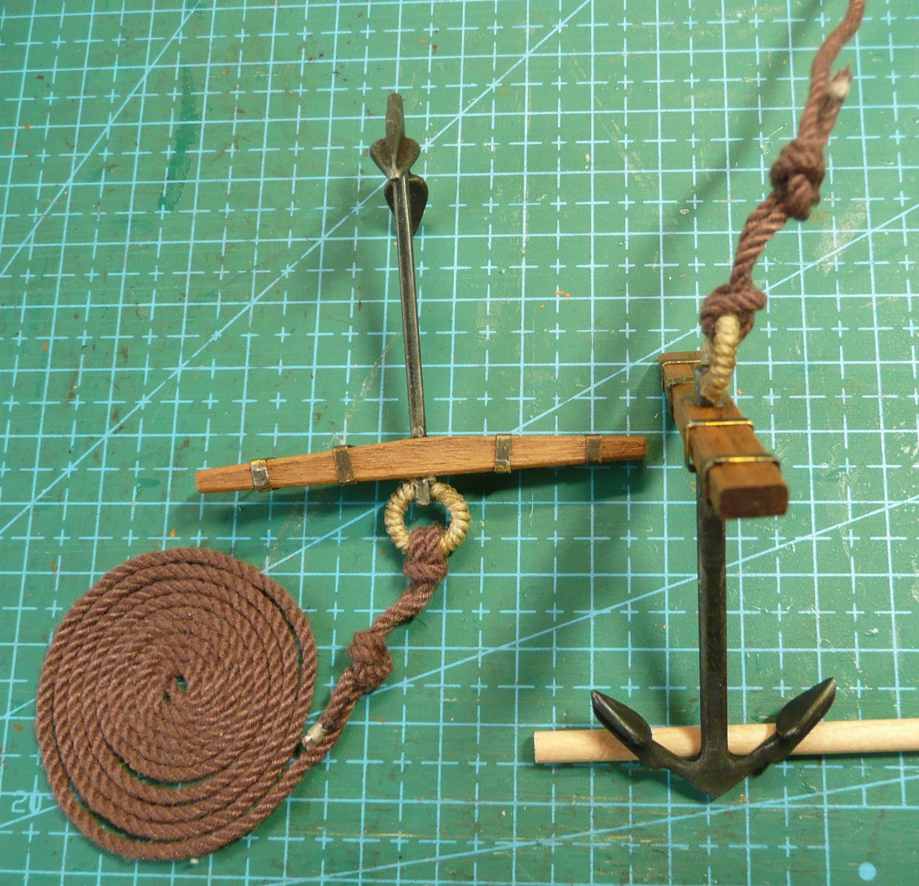Kotwice z zestawu okazały się nieco mniejsze od wymaganych, a lina kotwiczna tak "sflaczała", że musiałem ją rozkręcić i skręcić od nowa.