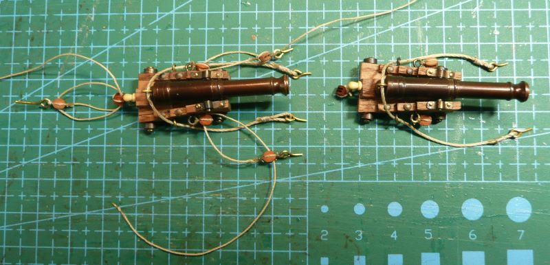 W zestawie znalazłem lufy armat, elementy do sklejenia lawet i kółka. Uprząż lawet wykonałem przy użyciu bloczków 3,5 mm firmy Falconet. Pozdrawiam