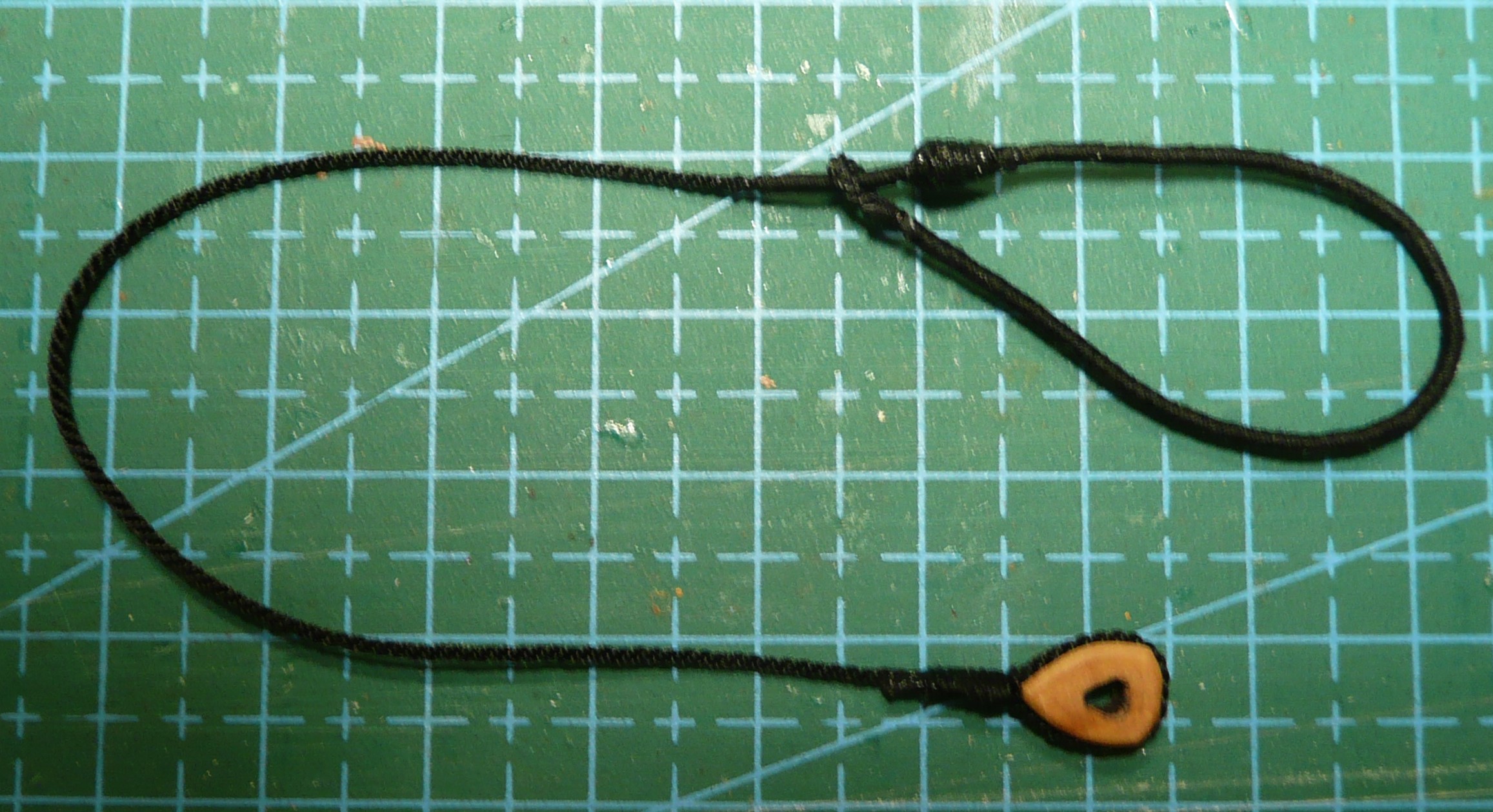 Polecam tez zrobienie sobie z duzych igiel zamocowanych na przedluzkach drewnianych (trzonki od np. starych pedzelkow), kilku narzedzi do wiazania linek, jak na zalaczniku - sa one niezastapione w tej pracy i ulatwiaja dojscie w glab kadluba, w ta "pajeczyne" linek.