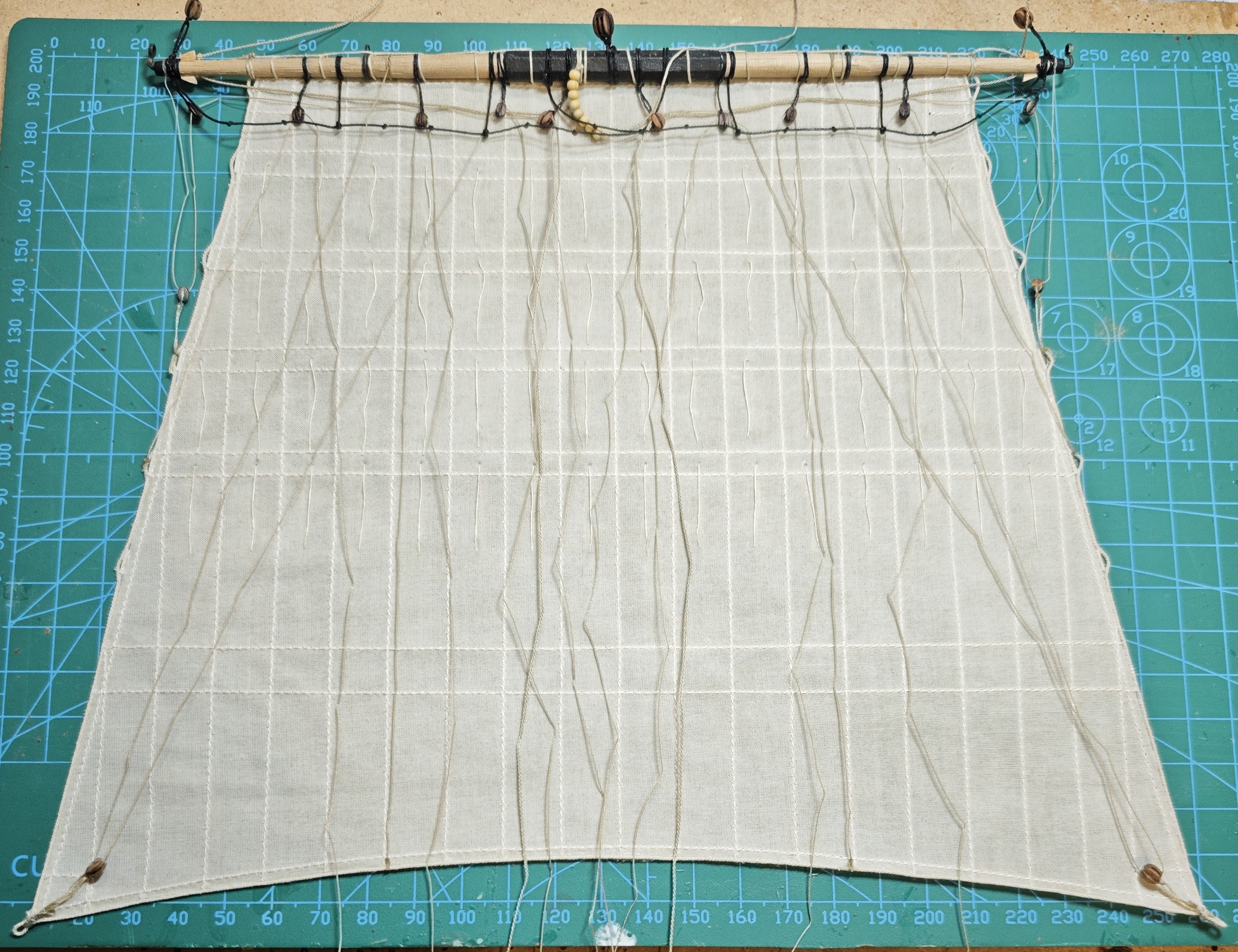 Żagle zostały uszyte z batystu zakupionego za niewielkie pieniądze w zwykłym sklepie tekstylnym - jeszcze do budowy poprzedniego modelu "Santa Maria" https://www.koga.net.pl/forum/7/47615.html?start=20