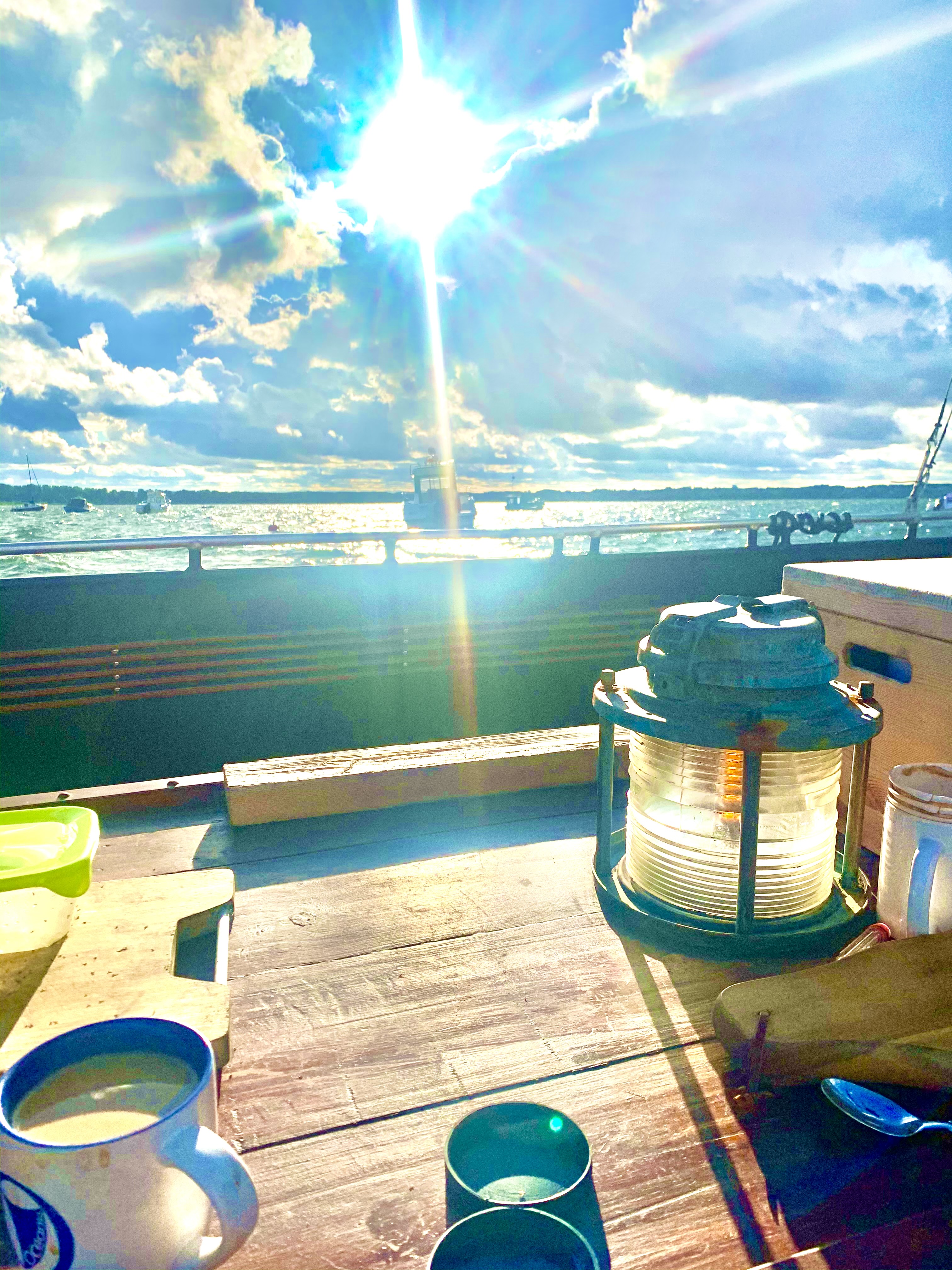 Witek Latem jak pogoda dopisuje wieczorami na pokładzie się dzieje . Czyli maleńki rejs o zachodzie słońca i morskie opowieści . Ja pracuję pry ratowaniu majątku armatora a to już jest często cala masa wspomnień u kolegów to samo im więcej wody mineralnej pijemy tym ciekawsze opowieści aż zjawia się jakaś druga połowa i za ucho wyprowadza z Pancernika Czasem jednak bywa i tak że zostaje na chwilkę wciągnięta w rozmowy i po niej, czyli pije mineralną razem z nami a potem nadchodzi świt . Spotykamy się nazajutrz pijąc kawę i częstując się aspiryną wyprodukowaną przez wroga . To były najlepsze wakacje w moim życiu .
