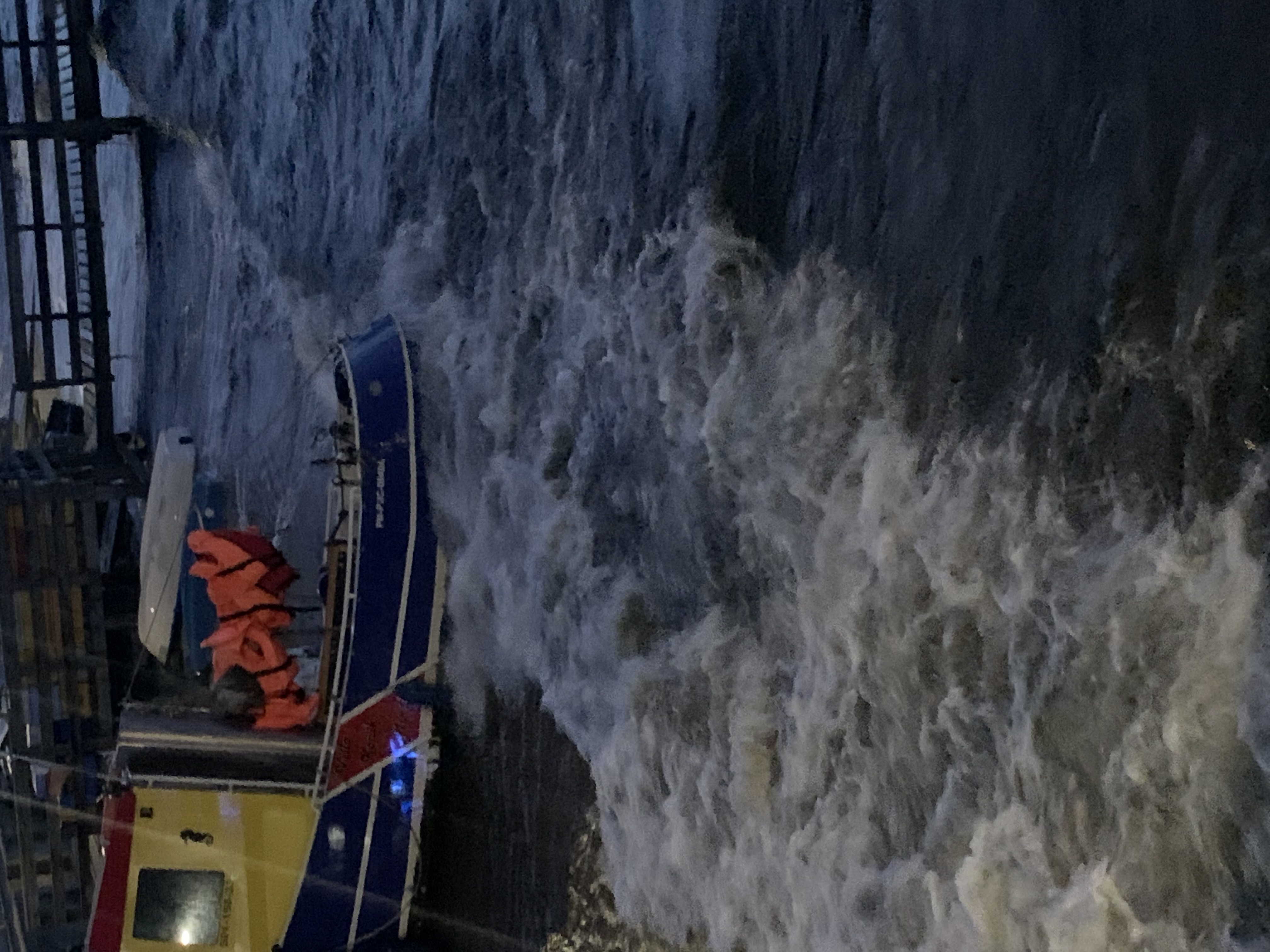 Jesień dwa lata temu niespodziewany sztorm zrywa cumy z jachtu motorowego Sternik ma mało czasu a silnik stacjonarny jak na złość nie odpala w krytycznym momencie Wzywa mnie na pomoc bo akurat na moim mini holowniku jest mój nr tel . Wieje jak cholera około minimum 120km/h bo potem mi powiedzieli serferzy stojący na pomoście bo tyle wskazywał ich wiatromierz.