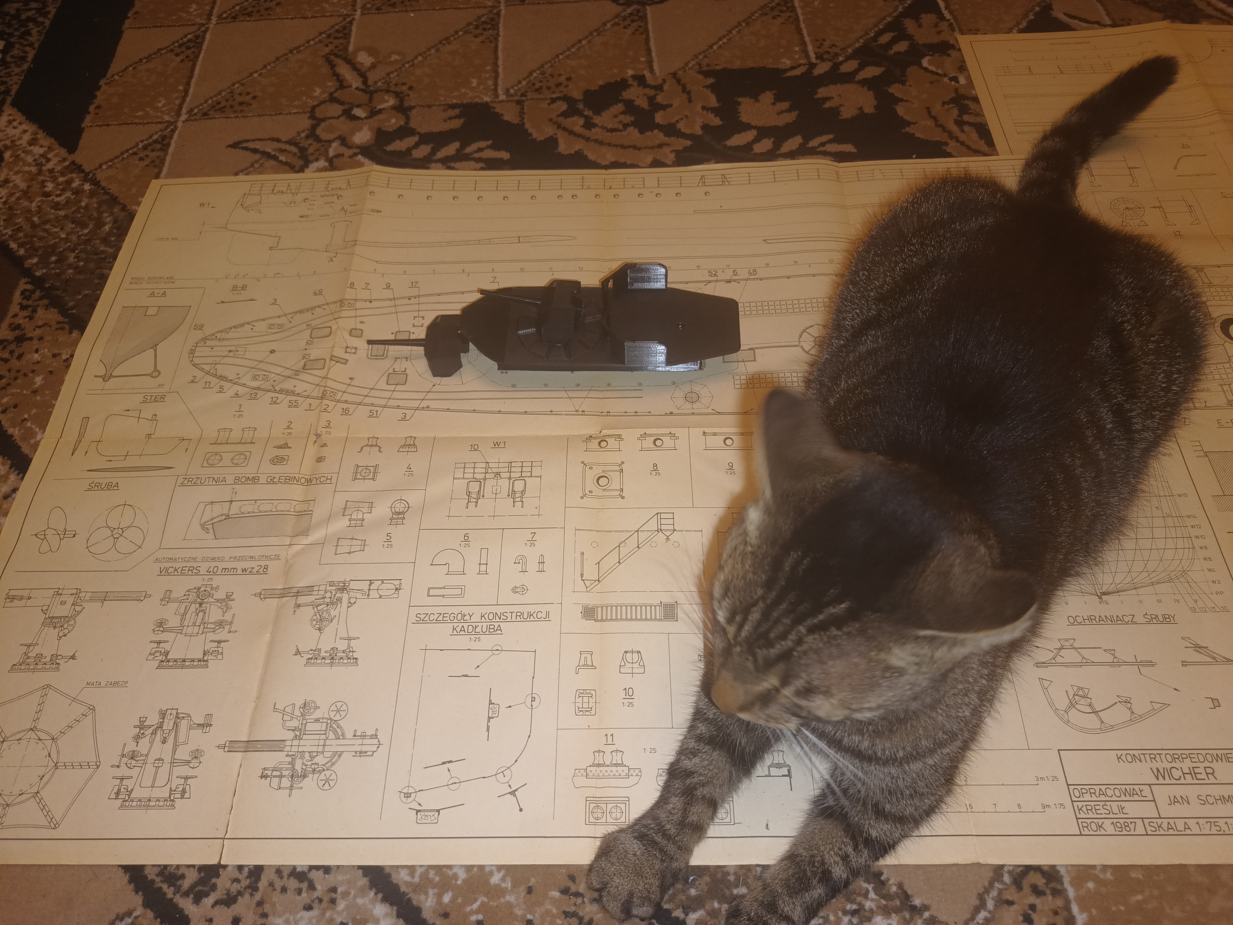 Na ostatnim zdjęciu ORP Kujawiak, którego kadłub wydrukowałem na próbę. Skala 1:100