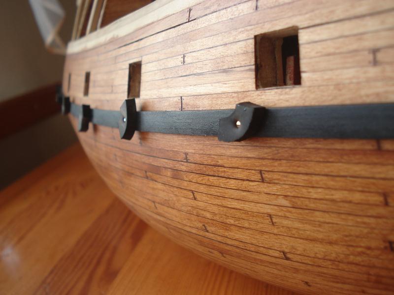 Dzięki panowie za wskazówki. Tymczasem trochę przybyło w nadburciu dziobowym tyle co na zdjęciach reszta spakowana, będzie zamontowana po dociągnięciu poszycia w górę(do pokładu kasztelu) i oczywiście wyszlifowaniu. Pozdr.