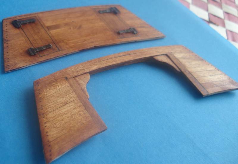 Zrobiłem je z rozklepanego drutu miedzianego tak dla próby. Do reszty widocznych zawiasów zakupiłem arkusz cienkiej blaszki miedzianej i specjalną oksydę i to był dobry zakup blaszka tnie się znakomicie a oksyda fajnie barwi na czarny kolorek tylko się trochę ściera i musi być dobrze odtłuszczona –nie wiem czym odtłuścić zwykłym rozpuszczalnikiem?