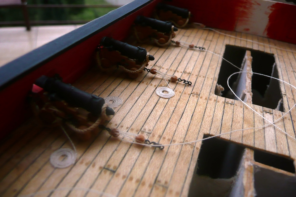 Przymocowałem lawety do pokładu wraz z linami hamującymi do burt. Postęp niewielki ale zawsze do przodu.
