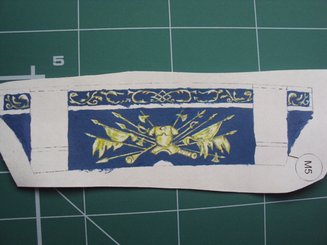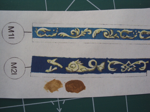 Postanowiłem zmienić drukowane malowidła na malowane o ile się uda. Na razie pomalowałem tło, zostawiając wzory drukowane ( nawet w tym zestawieniu lepiej to wygląda). Wzory będa malowane później, ponieważ przy malowaniu tła nieraz farbka najedzie na wzór. Używam pędza z oznaczeniem 1 - bardzo cienki.