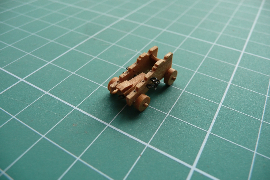 Lawety będą miały kolor jak na zdjęciach poniżej. Zostały lekko przetarte pokostem. Zaczynam doposażać je w oczka. Oczywiście jeszcze paru elementów brakuje. Zawleczek w ośkach kół niestety nie będzie a planowałem je wykonać jednak są za małe jak dla mnie.