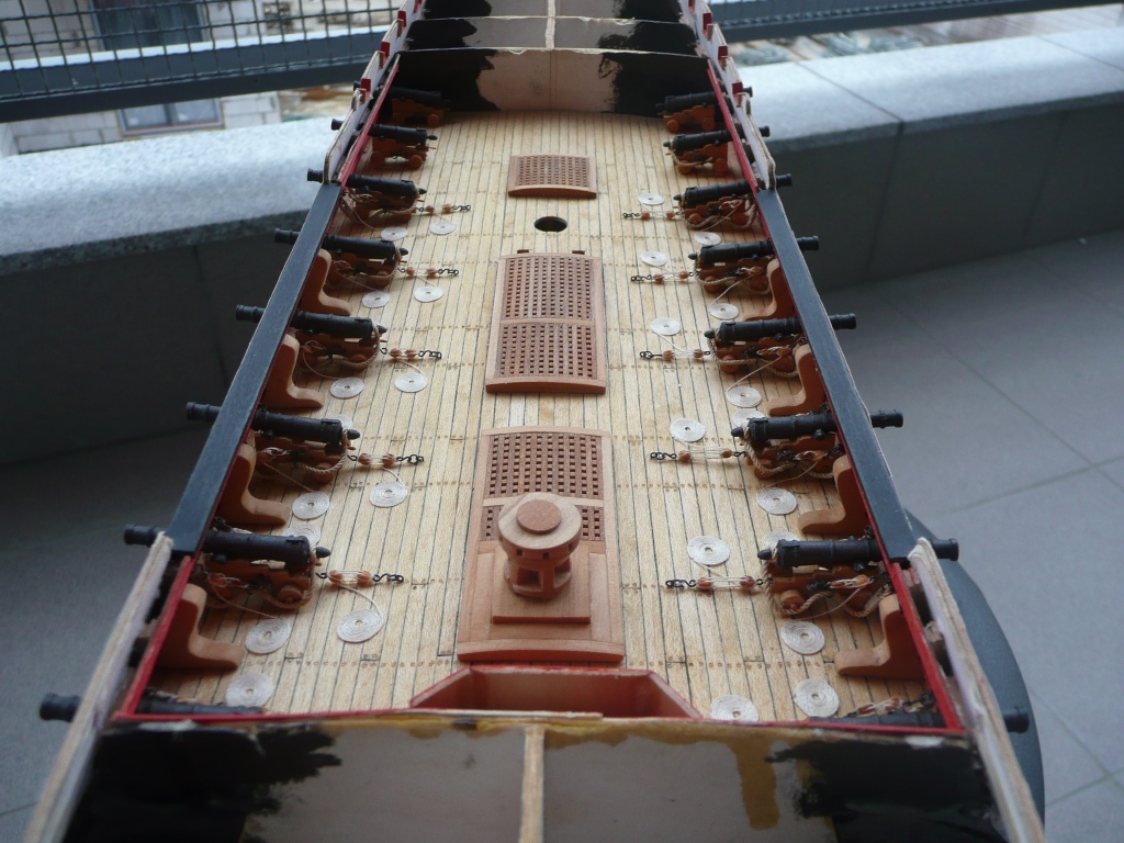 Pokład gotowy. W końcu można przykleić pokłady i ruszyć z budową. W terminie późniejszym dojdą jeszcze belki z kulami koło grettingów.