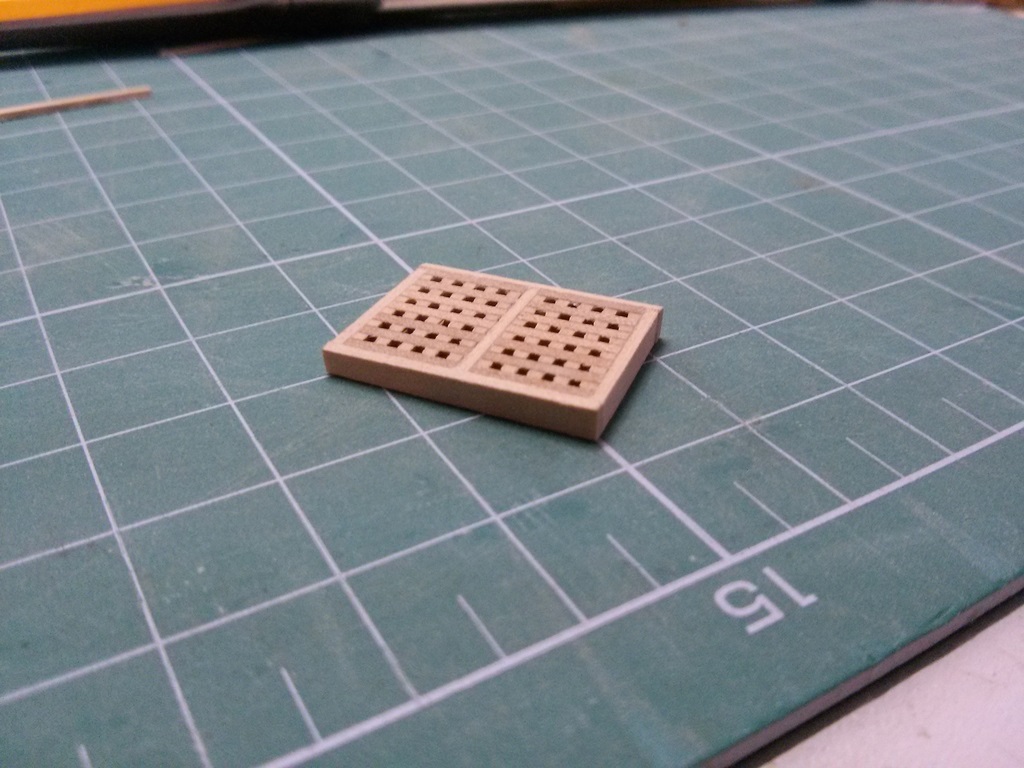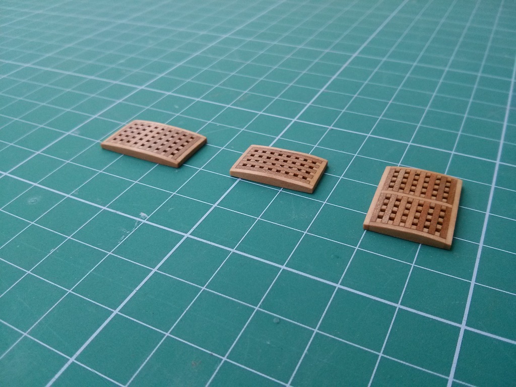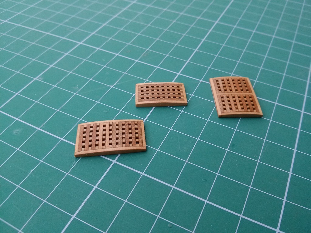 Troszkę wolnego było więc wypadało popracować przy modelu. Zrobiłem grettingi pokładu dziobowego. Łukowaty gretting wykonuję w ten sposób: