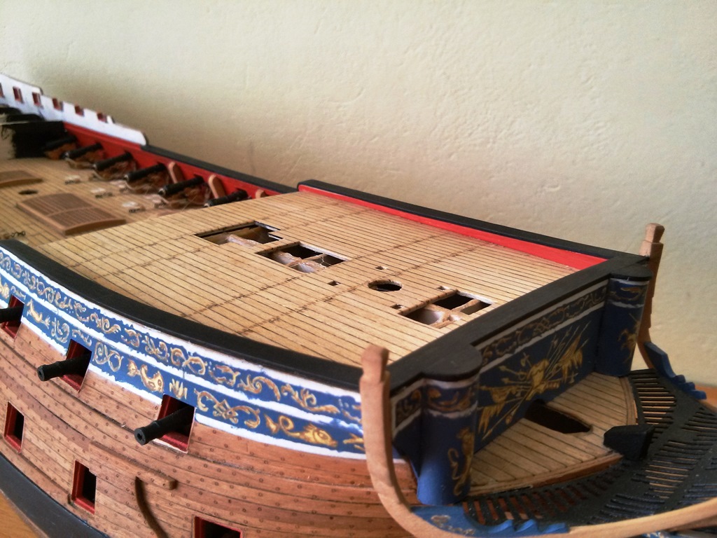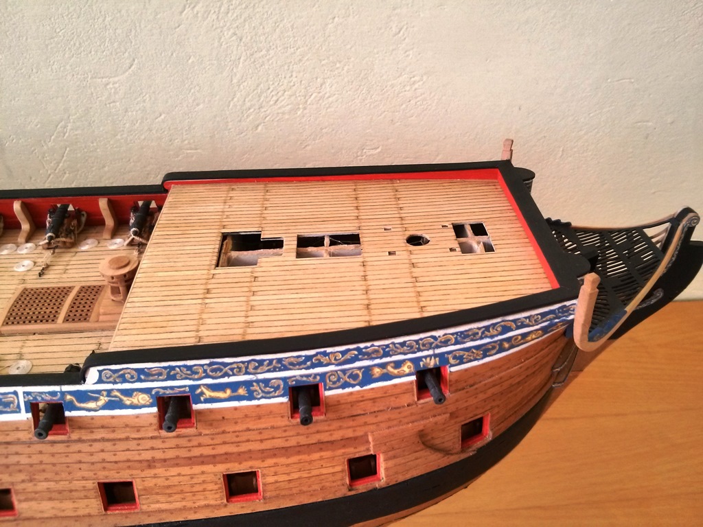 W końcu udało się przykleić pokład dziobowy. Zrobiłem wewnętrzne burty oraz ich wykonczenie, które skleiłem poza modelem: