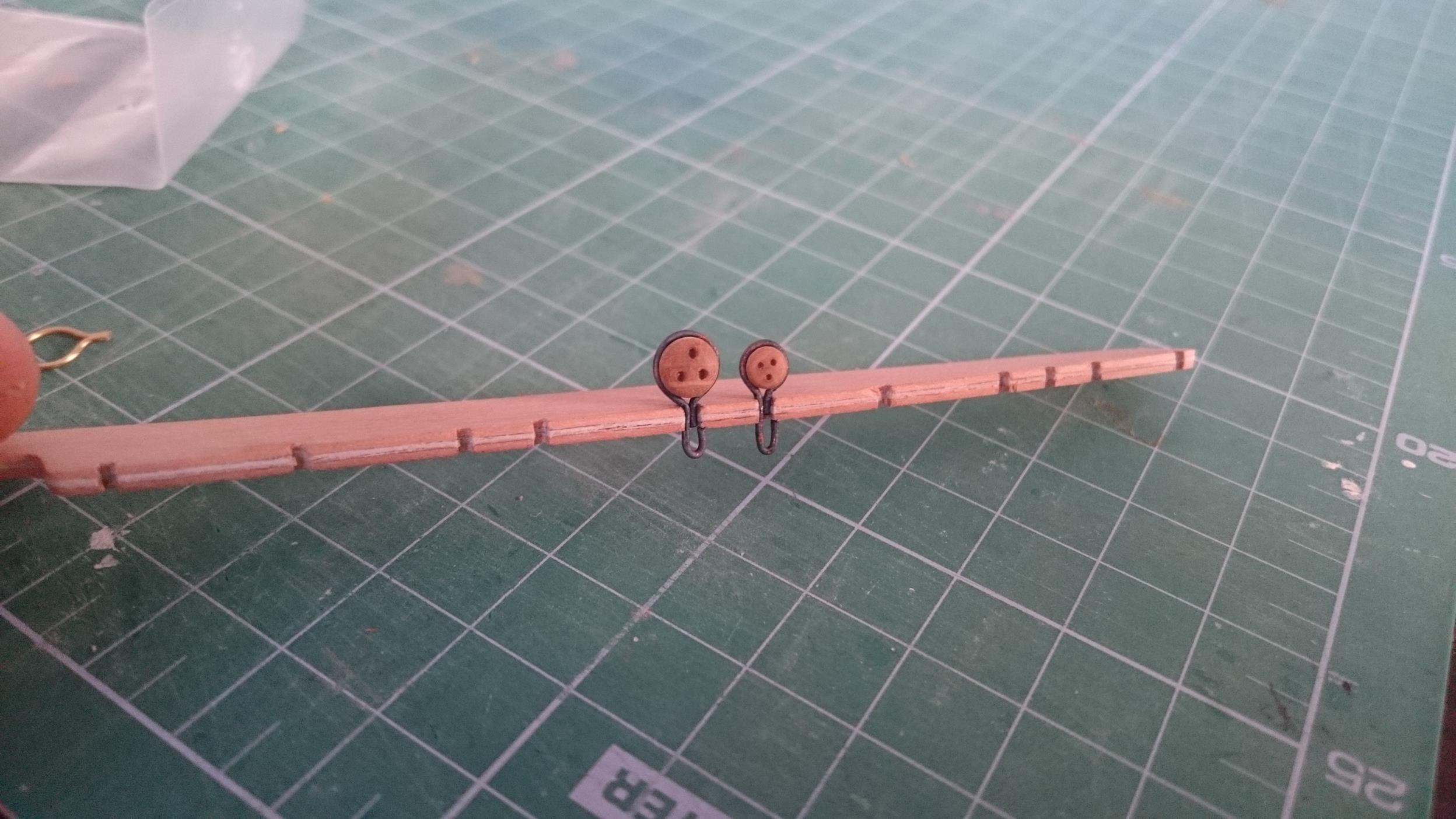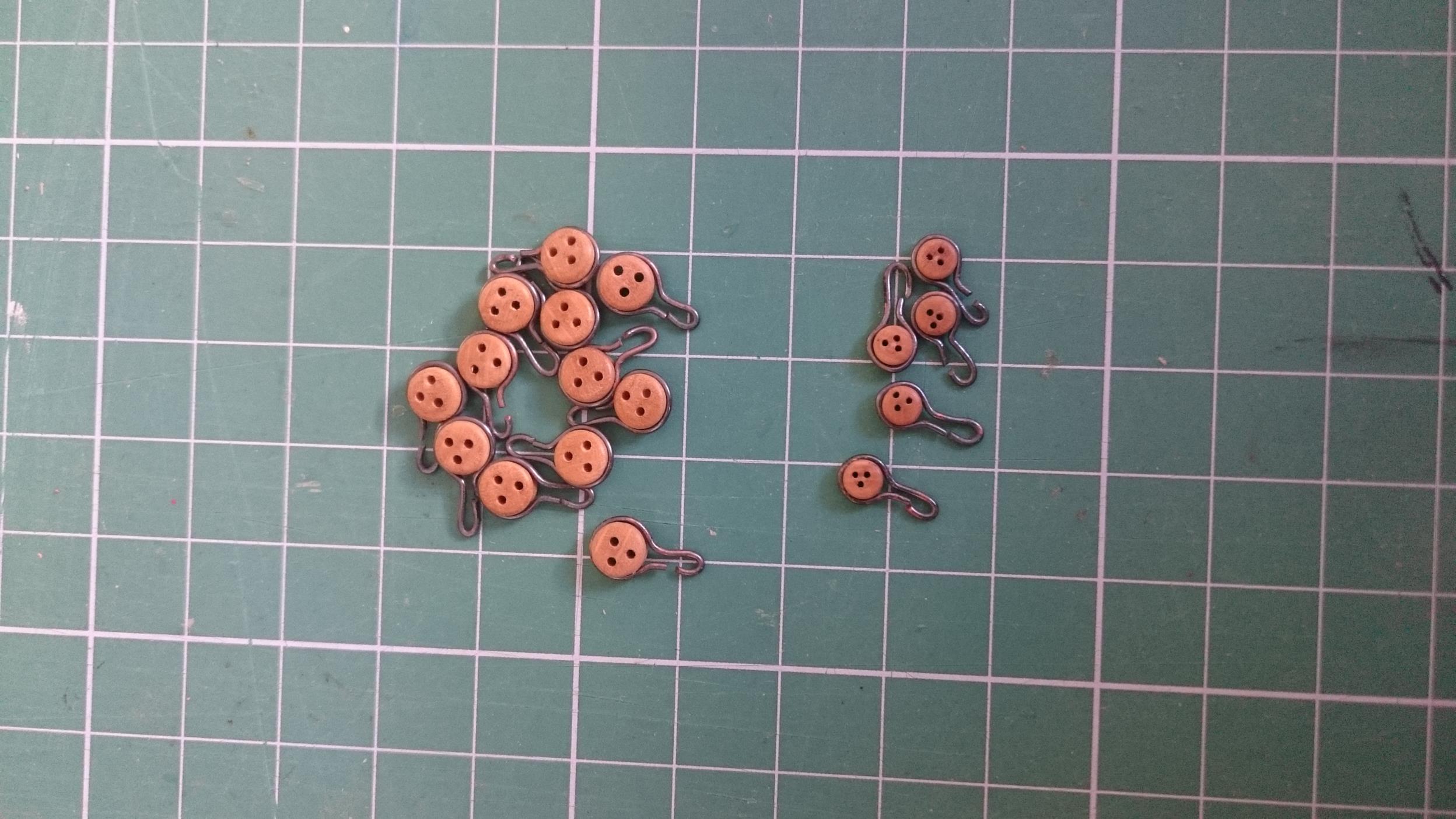 Zawiasy wykonuję sam, ponieważ zaproponowane przez Shipyard się nie nadają do niczego. Wykonuję je z izolacji drutu, papieru i drutu mosiężnego 0,3 mm. Całość malowane mieszanką farb humbrola - ta sama co armaty.
