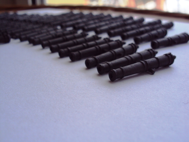 Dalej walczę z armatami. Zrobiłem działa 32 i 18 funtowe, co daje łącznie 56 sztuk.