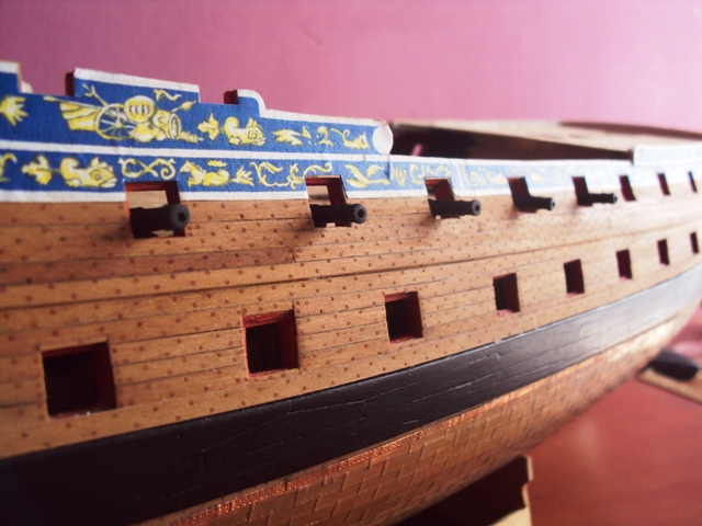 W armatach 32 funtowych te elementy się różnią, jednak nie przywiązywałem do tego zbytniej uwagi, ponieważ żadnego z tych elementów widać nie będzie. Zmieniłem również malowanie na ciut mniej błyszczące i jaśniejsze