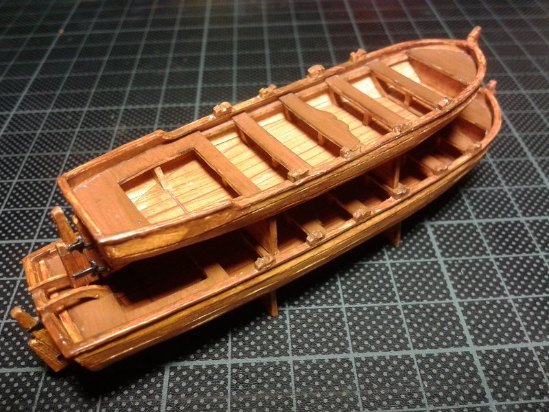 trochę nie rozumiem dlaczego wykonujesz te szalupy z kartonu przecież wykonanie ich z forniru jest mniej pracochłone a i efekt o wiele lepszy