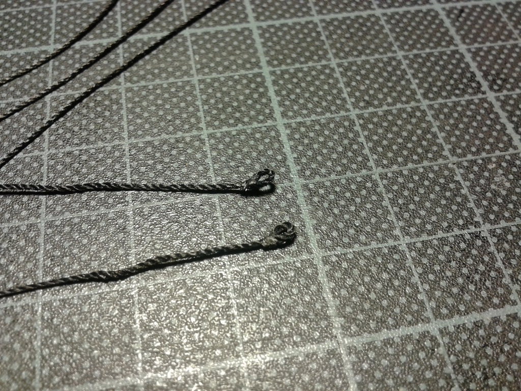 Przyszedł czas na zamocowanie jufersów w ławach wantowych. Będzie trochę drutoplastyki. Na początek odciągi jufersów want fokmasztu i grotmasztu