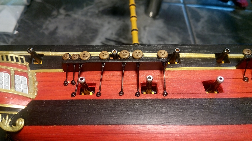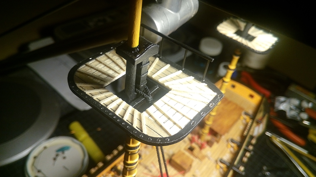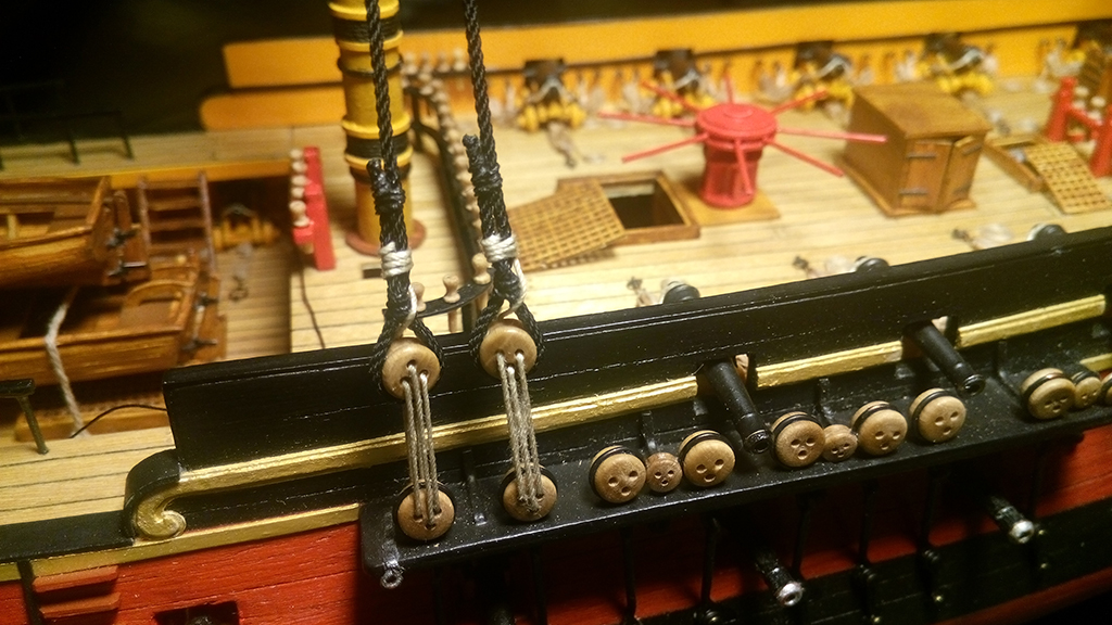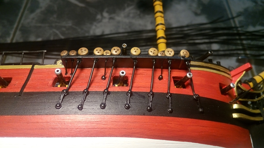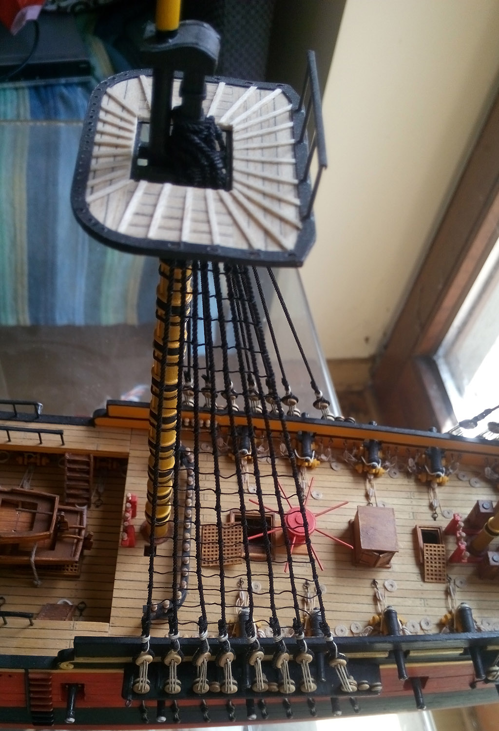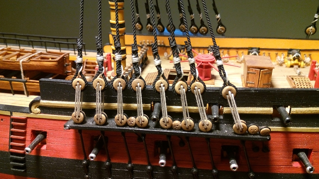 Skończyłem montować wanty pierwszego piętra, poprawiłem błędne ułożenie jufersa. Wiązania będą jeszcze malowane czarną farbą.
