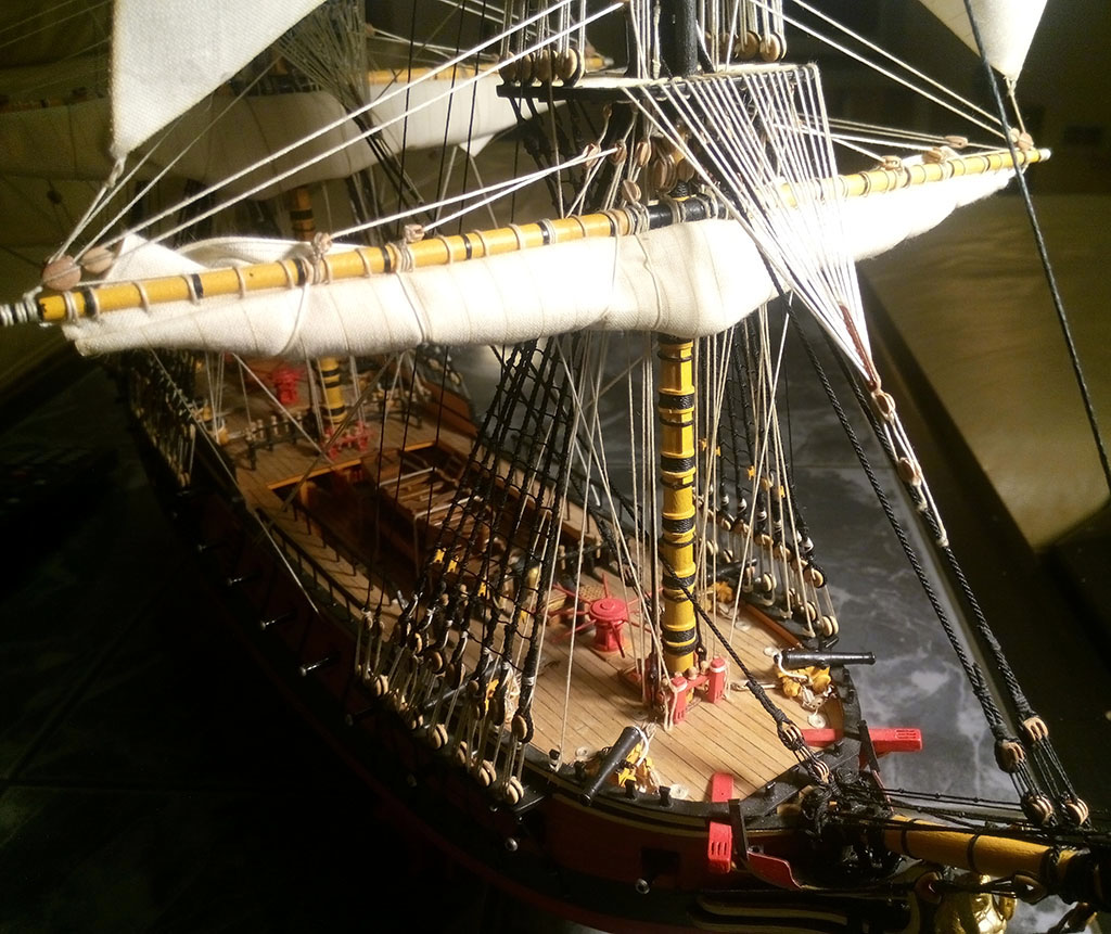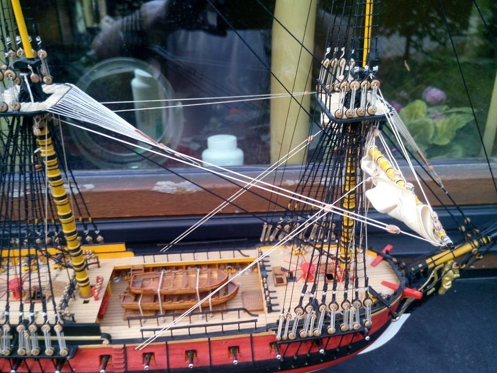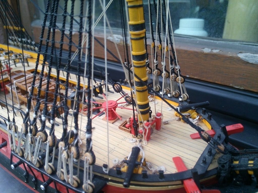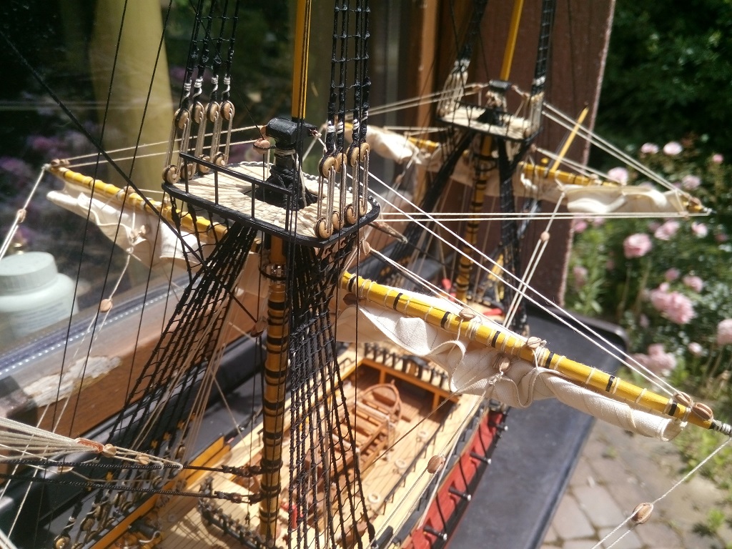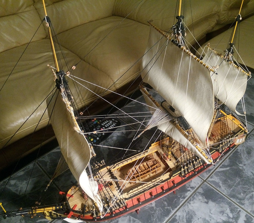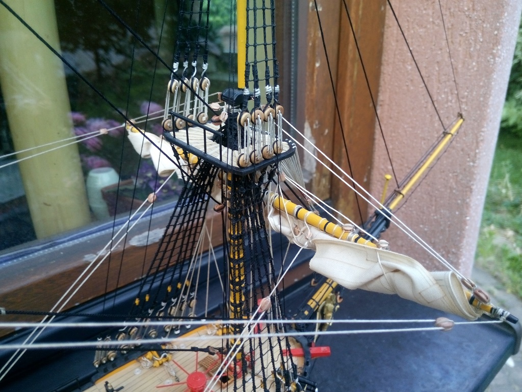 Tomku, pięknie wygląda olinowanie na Twojej "Leosi", ale przeraża mnie ta "plątanina" linek. W moim modeliku będzie tego znacznie mniej, ale mimo wszystko włos się jeży :)