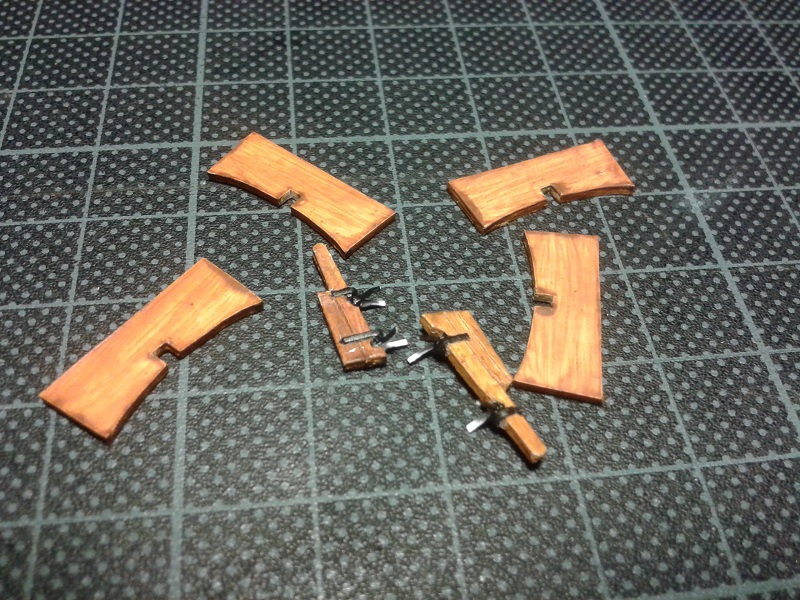 Zgadzam się z Wami, że elementy wykonane z forniru i drewna będą lepsze od kartonowych - można je lepiej obrobić i wyszlifować. Dlatego też poszycie kadłuba i pokłady robię z forniru i balsy, bo karton nie da takiego wyglądu. Ale większość to karton.