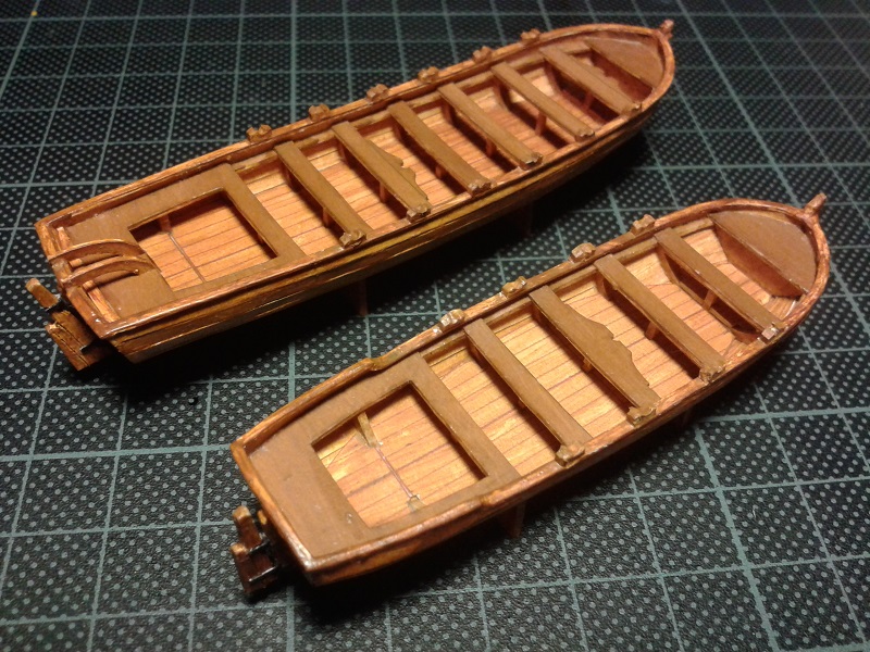 trochę nie rozumiem dlaczego wykonujesz te szalupy z kartonu przecież wykonanie ich z forniru jest mniej pracochłone a i efekt o wiele lepszy
