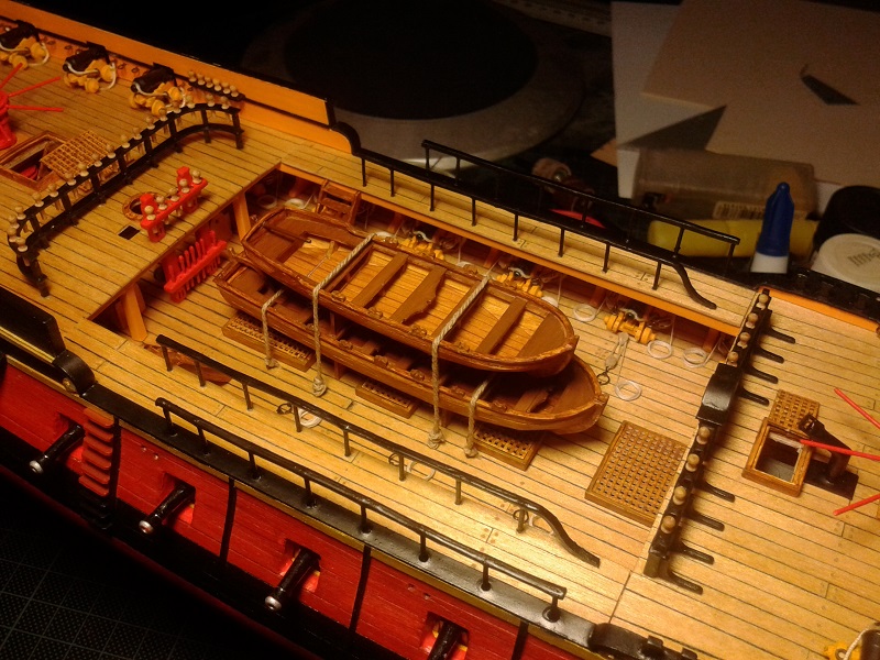 Prace pokładowe dobiegają końca, pozostało zrobić dzwon okrętowy i 48 zbloczy do dział - będzie dłubanina... Został jeszcze galion, będzie zrobiony po zamocowaniu bukszprytu. Kotwice, furty działowe oraz latarnie zostały już zrobione, ale jak wcześniej pisałem będą zamontowane na samym końcu...